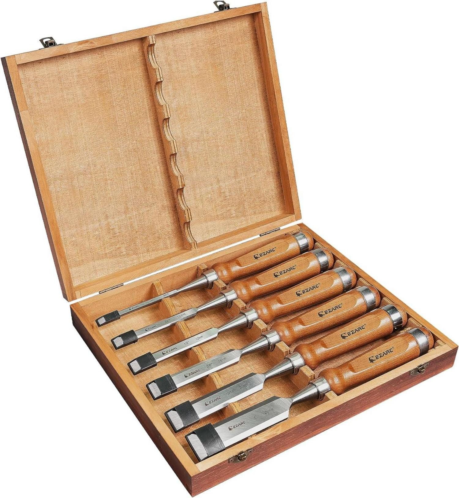 Das EZARC Stechbeitel Set für Holz ist ein unverzichtbares Werkzeug für alle Holzliebhaber und Handwerker. Mit 6 unterschiedlich großen Stecheisen (6mm, 10mm, 12mm, 16mm, 20mm, 25mm) werden all Ihre Holzbearbeitungsanforderungen erfüllt. Die scharfen Klingen aus hochwertigem Chrom-Vanadium-Stahl ermöglichen präzise und saubere Schnitte bei einer Vielzahl von Holzprojekten. Dank der hervorragenden Verpackung in einer Holzkiste eignet sich dieses Stechbeitel Set auch hervorragend als Geschenk. Egal, ob Sie ein Anfänger sind, der gerade in die Welt der Holzbearbeitung eintaucht, oder ein erfahrener Profi, der Präzision und Qualität benötigt, dieses Set wird allen Ansprüchen gerecht. Der Griff aus Eschenholz bietet nicht nur eine perfekte Balance für die Werkzeuge, sondern sorgt auch für ein angenehmes Handgefühl. Sie werden die Leichtigkeit und Kontrolle spüren, die dieser hochwertige Griff bietet, sodass Sie sich auch nach stundenlanger Arbeit nicht müde fühlen. Beginnen Sie Ihr nächstes Holzprojekt mit Vertrauen und Präzision mit dem EZARC Stechbeitel Set. Machen Sie sich das Leben leichter und investieren Sie in hochwertige Werkzeuge, die Ihnen lange Freude bereiten werden.