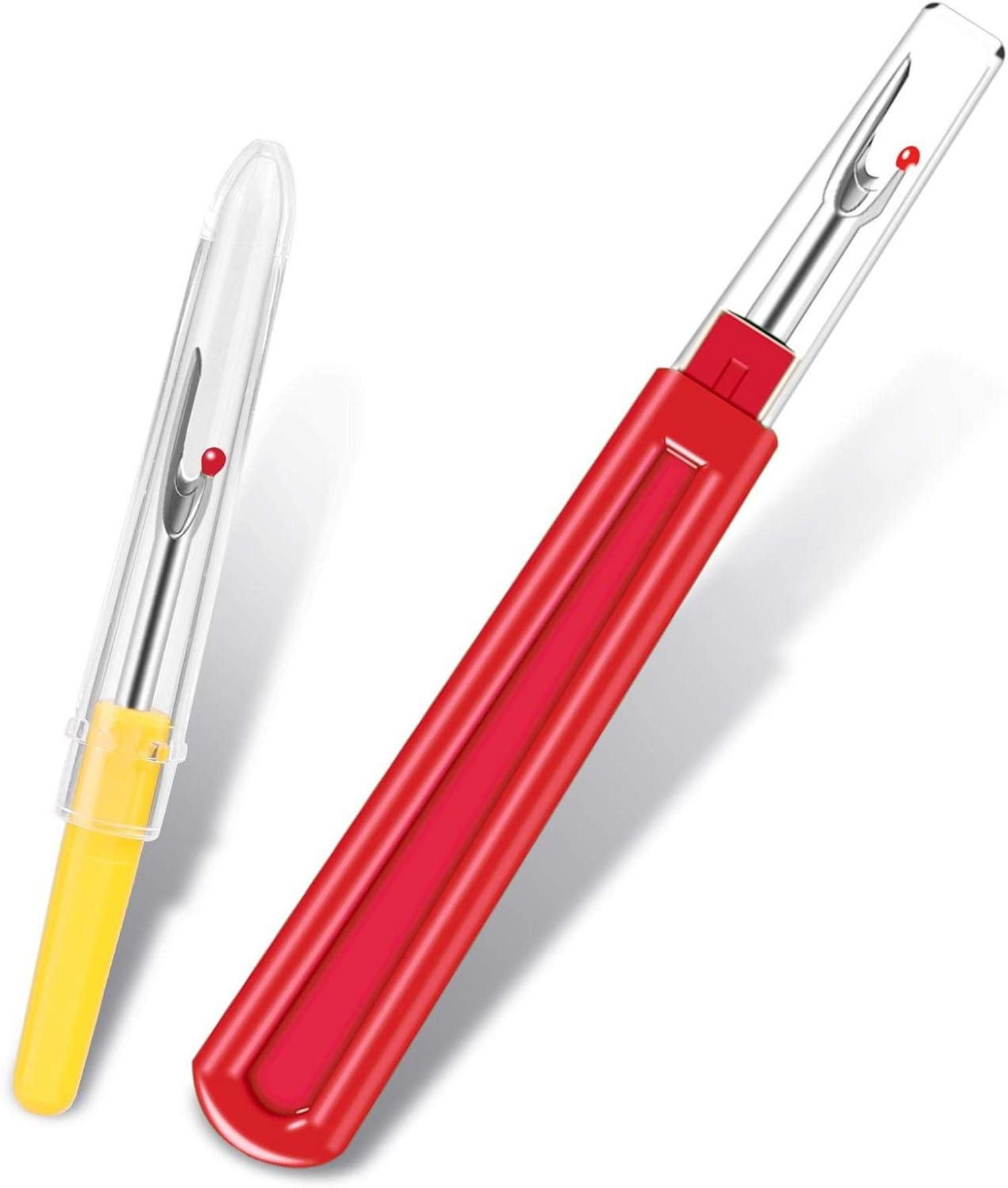 Guter Helfer zum Nähen: Mit dem Nahttrenner Set können unerwünschte Nähte und Stiche mühelos ausgeschnitten werden, ohne den Stoff zu beschädigen. Diese Seam Ripper sind ein ideales Geschenk für Freunde und Familie, die gerne nähen. Der Sicherheitskunststoffgriff sorgt für bequemen Griff, während die rote runde Kugel am Gabelkopf Ihre Kleidung schützt. Dank der hochwertigen Materialien sind die Faden Unpicker langlebig und können effizient Fäden durchtrennen. Das Kit enthält eine große (rot) und eine kleine (gelb) Nahttrenner, jeweils mit Kunststoffschutzkappen versehen. Ein unverzichtbares Werkzeug für alle Nähl ie bhaber!