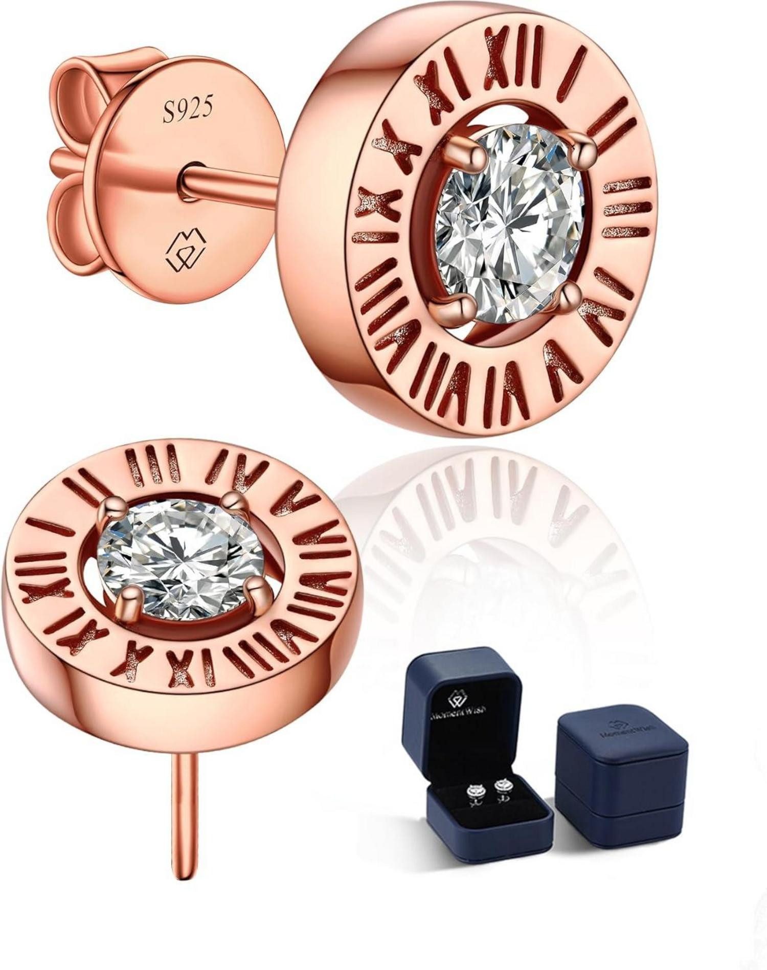 ???? Ohrringe Rosegold mit römischen Ziffern: Diese funkelnden Moissanit Ohrringe, umgeben von römischen Ziffern, symbolisieren die tägliche Liebe. Ein klassisches und einzigartiges Design, perfekt als Jahrestagsgeschenk für Ihre Liebsten. Jeder Ohrring ist mit einem 5 mm/0,5 ct Moissanit-Mittelstein besetzt, insgesamt 1 ct pro Paar. Verifiziert von Transparency: Jeder Artikel wird vor dem Versand überprüft und mit einem speziellen Code versehen.