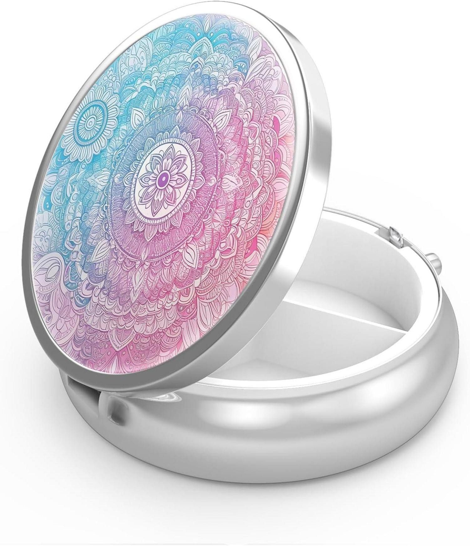 Erweiterte Artikelbeschreibung: Die Pillendose mit drei Fächern bietet die perfekte Lösung, um Ihre Medikamente und Vitamine ordentlich und organisiert zu halten. Mit einem Durchmesser von 4,5 cm und einer Dicke von 1,6 cm ist sie kompakt und leicht, sodass Sie sie überall hin mitnehmen können. Das Dekor in Mandala Bright macht die Pillendose zu einem Blickfang und verleiht Ihrem Alltag einen Hauch von Stil. Der hochglänzende Chromdeckel mit zuverlässigem Federverschluss hält Ihre Medikamente sicher verschlossen.Diese tragbare Pillendose ist nicht nur funktional, sondern auch dekorativ. Der kleine Spiegel im Inneren kann in Notfällen nützlich sein. Hergestellt aus hochwertigem Metall und Kunststoff, ist die Pillendose langlebig und robust. Die internen Trennwände sorgen dafür, dass Ihre Pillen getrennt und geordnet aufbewahrt werden.Egal ob für den täglichen Gebrauch, auf Reisen oder bei Outdoor-Aktivitäten, diese Pillendose ist vielseitig einsetzbar. Bewahren Sie Ihre Medikamente, Vitamine, Süßigkeiten oder Kosmetika sicher auf. Mit dem einfachen Druckknopfmechanismus öffnen Sie die Pillendose mühelos und haben Ihren Bedarf jederzeit griffbereit.Schenken Sie sich selbst oder Ihren Lieben dieses einzigartige Geschenk. Zeigen Sie Ihre Sorge und Zuneigung mit diesem praktischen Organizer, der gleichzeitig als Modeaccessoire dient. Die Pillendose mit einem künstlerischen Mandala-Design ist das ideale Geschenk für jeden Anlass.