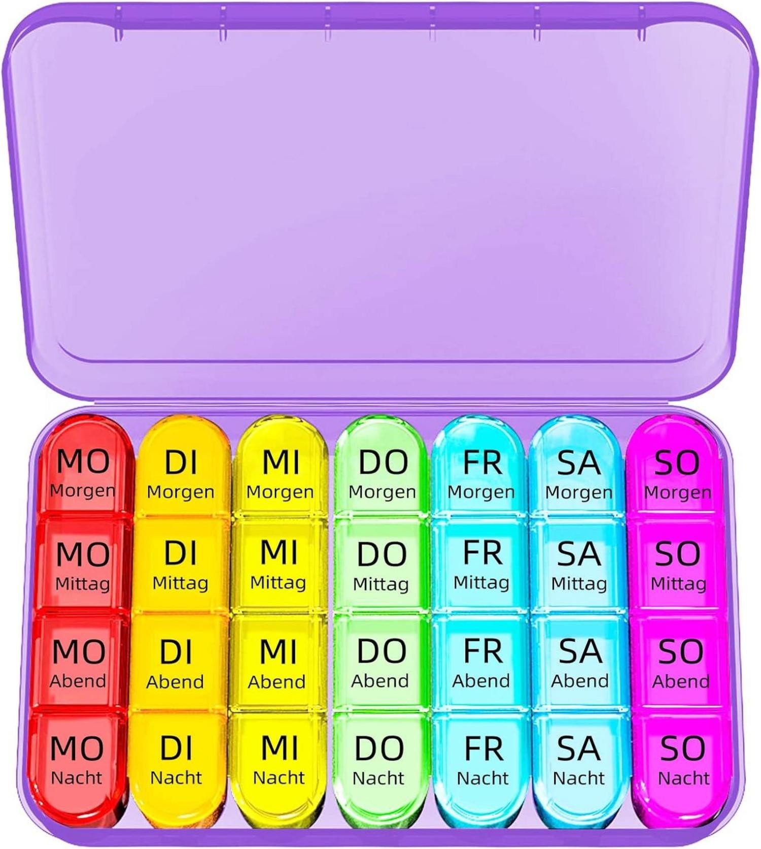 Die Doruimi Tablettenbox 7 Tage Morgens Mittags Abends ist die perfekte Lösung, um Ihre Medikamente organisiert zu halten. Mit klaren, großen Texten auf den Fächern ist dieser Medikamentenorganizer ideal für ältere Menschen oder Personen mit Sehschwierigkeiten. Die pillendose verfügt über 7 separate Fächer für jeden Wochentag und ist in leuchtendem Lila gehalten.