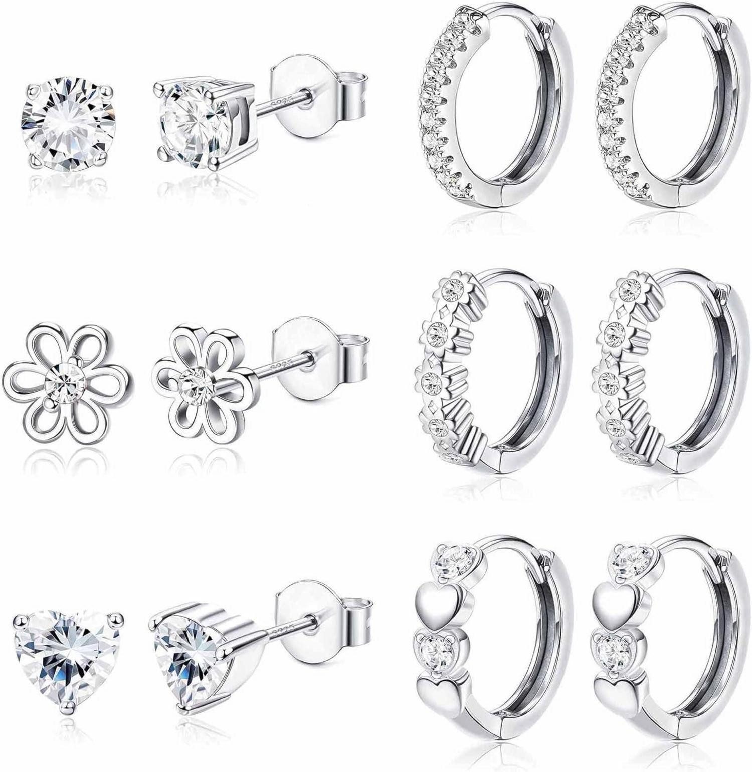 ????JeweBella Kundendienst???? - Wir versprechen einen 365-tägigen Produktaustausch. Bei Fragen kontaktieren Sie uns gerne für freundlichen Service. Perfektes Geschenk für Mädchen, geeignet für Geburtstage, Valentinstage und mehr. Das Set beinhaltet 6 Paar Ohrringe: Blume Ohrstecker, herzförmige Ohrstecker und 3 Paare kleine Creolen. Hergestellt aus sicheren 925 Silberstiften und Kupfer mit hochwertigen kubischen Zirkonia Einlagen. Geeignet für den ganzen Tag tragen, mit sicheren Schmetterling Rücken. Verfügbar in Weiß, Rosa, Blau und Lila. Hypoallergen und führt nicht zu grünen Ohren. Ein anmutiges und stilvolles Set, das zu jedem Outfit passt.