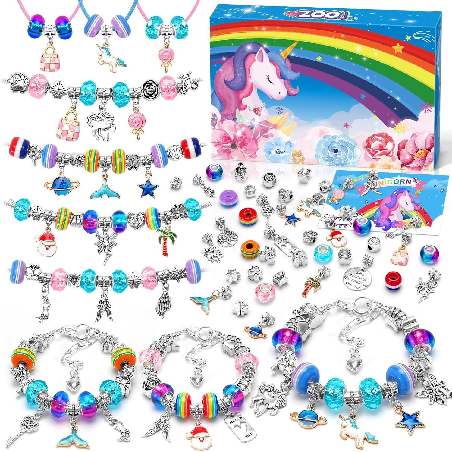 Die hochwertigen Materialien und das einfache Installationsverfahren machen dieses Bastelset für Kinder ab 6 Jahren einfach zu bedienen. Mädchen im Alter von 8 Jahren können problemlos die Perlen wechseln, um verschiedene Stile zu kreieren. Das Armband-Kit enthält auch eine Vielzahl von Charms wie Einhörner, Meerjungfrauen und Engelsflügel, um märchenhaften Schmuck herzustellen.