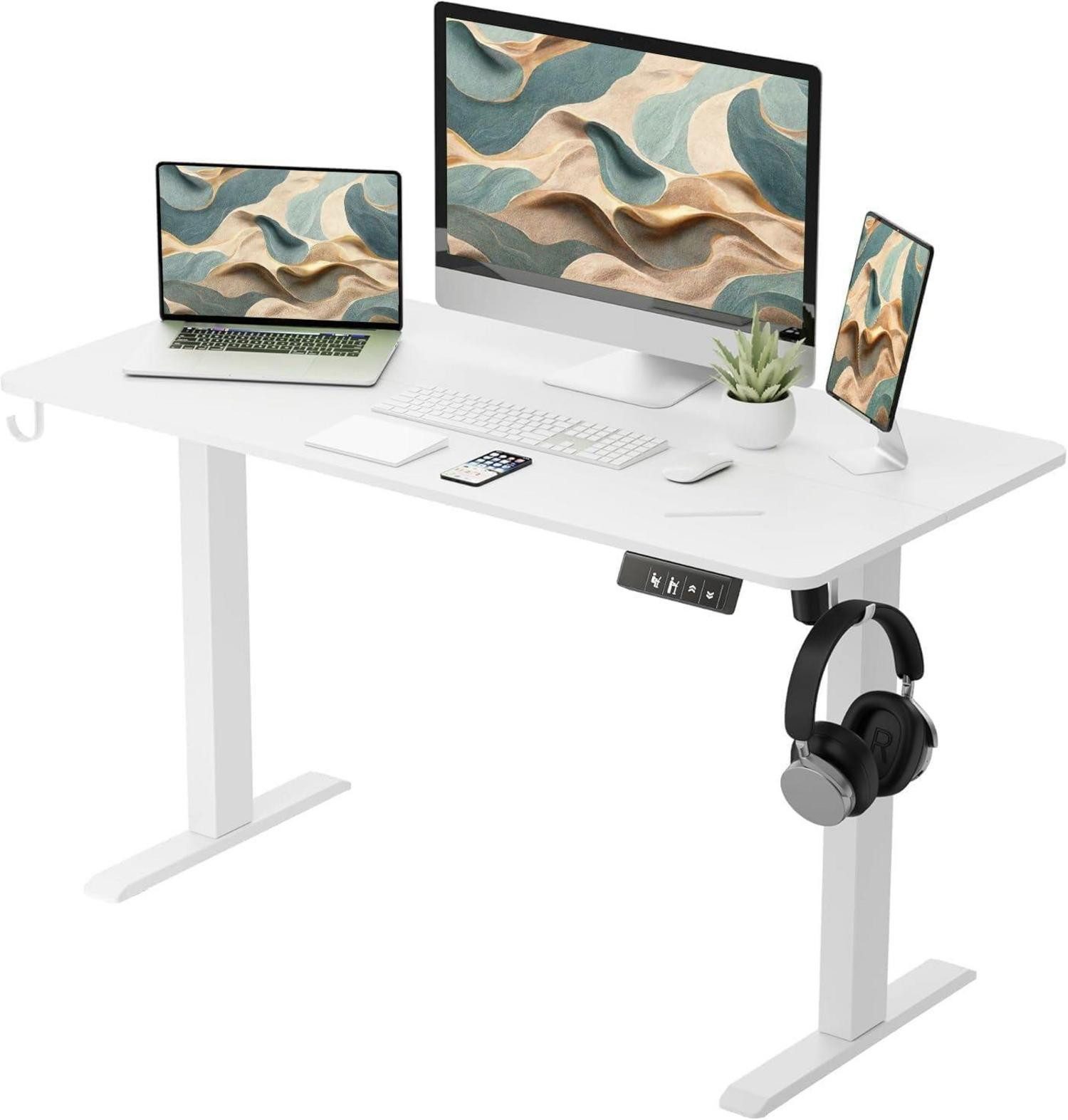 Servicegarantie: Wenn Sie bei BEXEVUE kaufen, bieten wir Ihnen vor und nach dem Kauf einen professionellen Service und Sie können außerdem unsere 30-tägige risikofreie Garantie erhalten. Wenn Sie Fragen haben, zögern Sie nicht, uns zu kontaktieren!Geräumiger Arbeitsbereich: BEXEVUE-Stahlrahmen in Industriequalität gepaart mit einer stabilen Tischplatte ermöglicht eine Tragfähigkeit von 70 kg, um Ihren idealen großen Arbeitsbereich zu unterstützen. Es umfasst 2 Haken und 4 um 360 Grad drehbare Rollen mit Bremsfunktion. Dadurch kann es gedreht werden, um es unter den Schreibtischbeinen zu befestigen. Sie können sie nach Bedarf installieren. Die maximale Belastbarkeit eines Hakens beträgt 10 kg.Antikollisionstechnologie: Die integrierte Antikollisionstechnologie von BEXEVUE schützt den Tisch vor Stößen und Kratzern. Wenn der Sitz-Steh-Schreibtisch auf dem Weg nach unten auf ein Hindernis trifft, stoppt der Schreibtisch automatisch und bewegt sich dann leicht in die entgegengesetzte Richtung. Dieses Antikollisionssystem schützt Ihr Büro und Ihr Eigentum.Smart Memory Panel: BEXEVUE fortschrittliche LED-Bedienfeld bietet 3 voreingestellte Speichertasten. Das bedeutet, dass Sie und andere Familienmitglieder mit einer Körpergröße zwischen 110 cm und 199 cm Ihre bevorzugten Höheneinstellungen programmieren können. Sie können 3 übliche Höhen voreinstellen und diese mit nur einem Tastendruck schnell erreichen.Elektrisch Höhenverstellbares Hebesystem: Einfache Montage, weniger als 45 Minuten. BEXEVUE motorisierte Hebemechanismus bietet flexiblere Höheneinstellungen von 72 bis 118 cm (mit Tablett) bei einer Geschwindigkeit von maximal 2.3 cm/Sekunde. Niedriger Geräuschpegel (weniger als 45 dB) während des Betriebs.