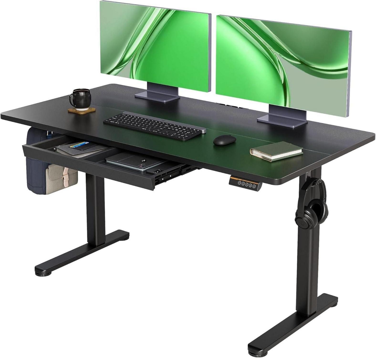 Der höhenverstellbare Schreibtisch von Claiks bietet nicht nur die Möglichkeit, die Höhe des Tisches individuell anzupassen, sondern überzeugt auch durch seine praktischen Eigenschaften. Mit einer Höheneinstellung von 72 bis 118 cm per Knopfdruck ist dieser Schreibtisch ideal für jeden, der sich einen ergonomischen Arbeitsplatz wünscht. Die Schublade des Schreibtisches ist clever unterteilt, um eine effektive Platznutzung zu gewährleisten und genügend Raum für Laptop oder Unterlagen zu bieten. Dank des robusten Stahlgestells ist der Arbeitsplatz stabil und zuverlässig. Zudem sind Anti-Kollisions- und Überhitzungsschutzfunktionen integriert. Mitgeliefert werden praktische Extras wie Kopfhörerhaken und Kabelmanagement-Zubehör. Der Schreibtisch von Claiks ist die perfekte Wahl für eine produktive und komfortable Arbeitsumgebung.