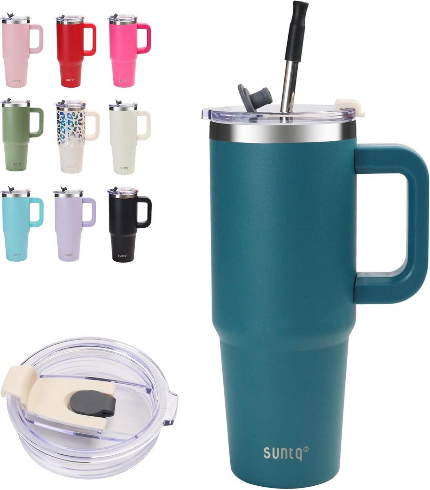 Becherhalter freundlich: Das schlanke Design unserer 30-oz Reise-Kaffeetasse ermöglicht es, perfekt in die meisten Becherhalter zu passen. Es ist bequemer, den Griff zu verwenden, so dass Sie ihn leicht halten und einen Schluck mit einer Hand nehmen können. Begleiten Sie Ihr Lieblings-Studio-Workout, auf dem Weg zur Arbeit oder lassen Sie es Ihr Schreibtischbegleiter sein.