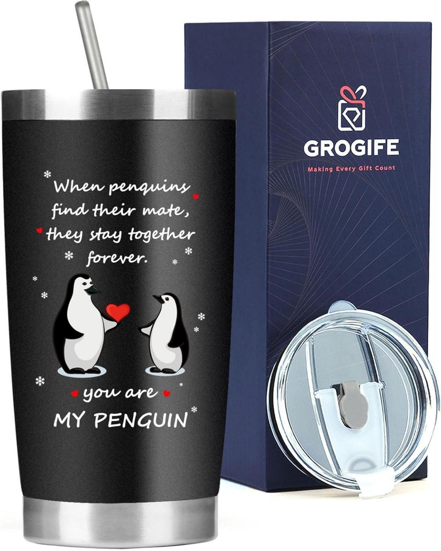Die Grogife Valentinstag Pinguin Geschenk für Ihn Kaffee Thermobecher ist das ideale Geschenk für Ihren Partner. Dieses einzigartige Motiv mit der romantischen Botschaft "Du bist mein Pinguin" symbolisiert ewige Liebe und Treue. Der hochwertige Thermobecher aus doppelwandigem vakuumisolierter Edelstahl hält heiße Getränke über 6 Stunden und kalte Getränke über 12 Stunden auf der idealen Temperatur.
