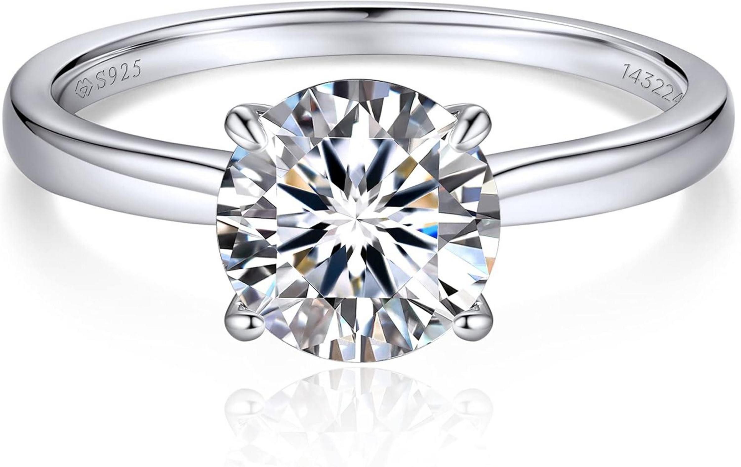 Erleben Sie den MomentWish Verlobungsring für Damen mit einem Moissanit von 1-2 Karat in Solitär-Design. Dieser atemberaubende Ring aus hochwertigem S925 Sterling Silber in D Farbe VVS1 Klarheit ist das perfekte Geschenk für Mama, Frauen und Freundinnen. Jeder Ring ist mit einer exklusiven Moissanit-ID graviert, um die wahre Liebe zu symbolisieren.