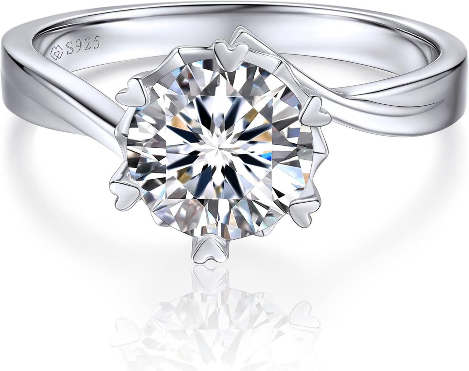 ???? Schneeflocke Verlobungsring: Dieser Solitär Verlobungsring mit 2 Karat Moissainte ist in eine handgefertigte 6-Krappen-Schneeflockenfassung eingefasst, die reine und schöne Liebe symbolisiert. Perfekt für den täglichen Gebrauch.