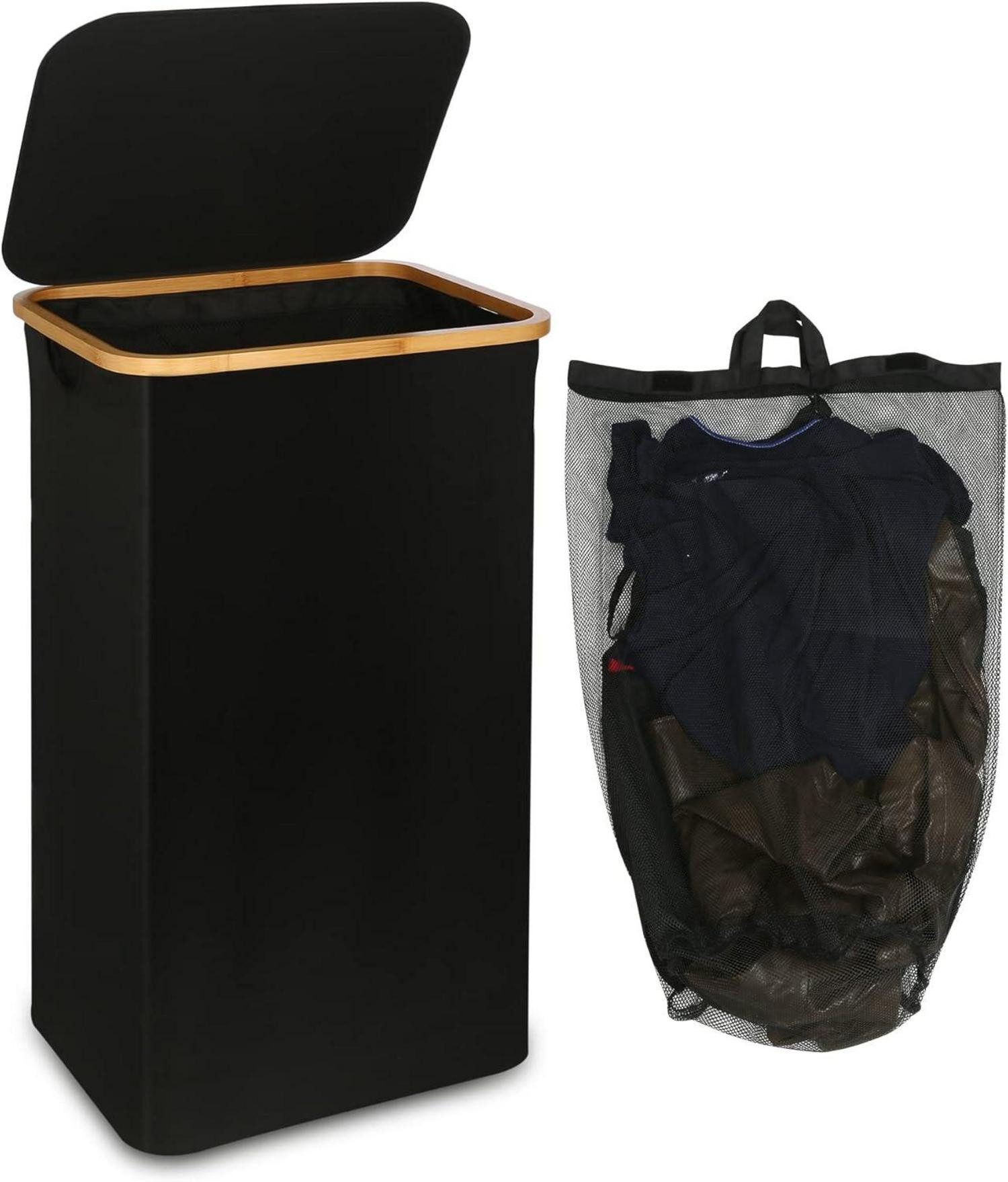 Mit seinen zwei Bambusgriffen lässt sich der Wäschesammler mühelos in verschiedene Räume tragen. Der Deckel auf der Oberseite hält unangenehme Gerüche fern und sorgt für eine aufgeräumte Umgebung. Mit einem Volumen von 120 Litern bietet dieser Wäschekorb ausreichend Platz für die gesamte Familie und hilft dabei, Ihr Zuhause sauber und ordentlich zu halten.