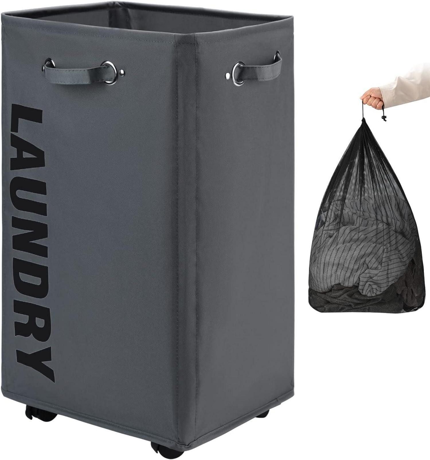 Der Wäschekorb verfügt über verdickte Griffe für eine komfortable und dauerhafte Nutzung. Darüber hinaus sind die Rollen an der Unterseite ideal, um die Wäsche mühelos von Raum zu Raum zu bewegen, ohne schwere Lasten tragen zu müssen.