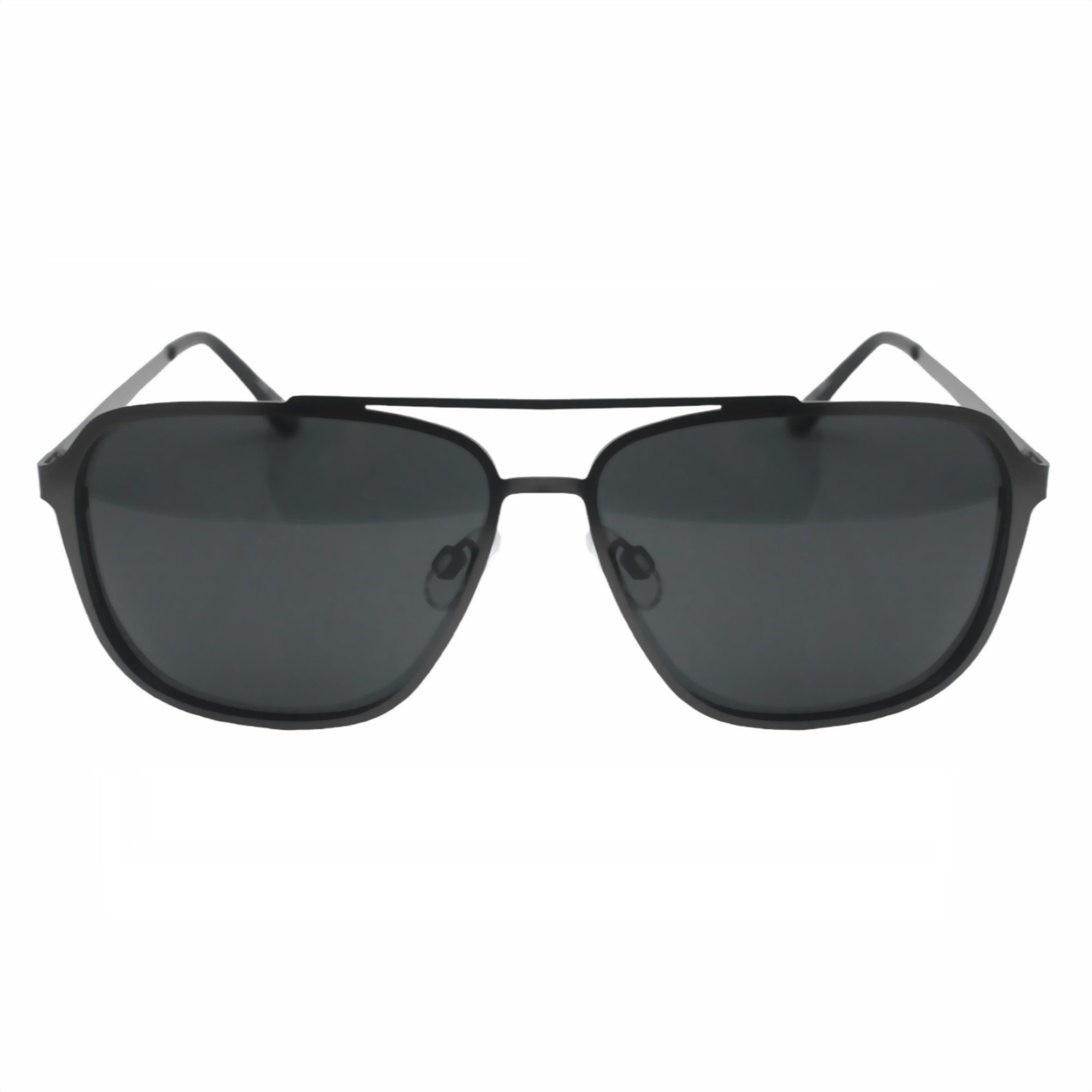 Sportbrille Pilotenbrille Sonnenbrille Rechteckig Leichtgewicht nur 25gramm Edelstahl Brille von Luxxada ® Grau Metallic mit UV400 Getönte und Polarisierte Gläser in Schwarz