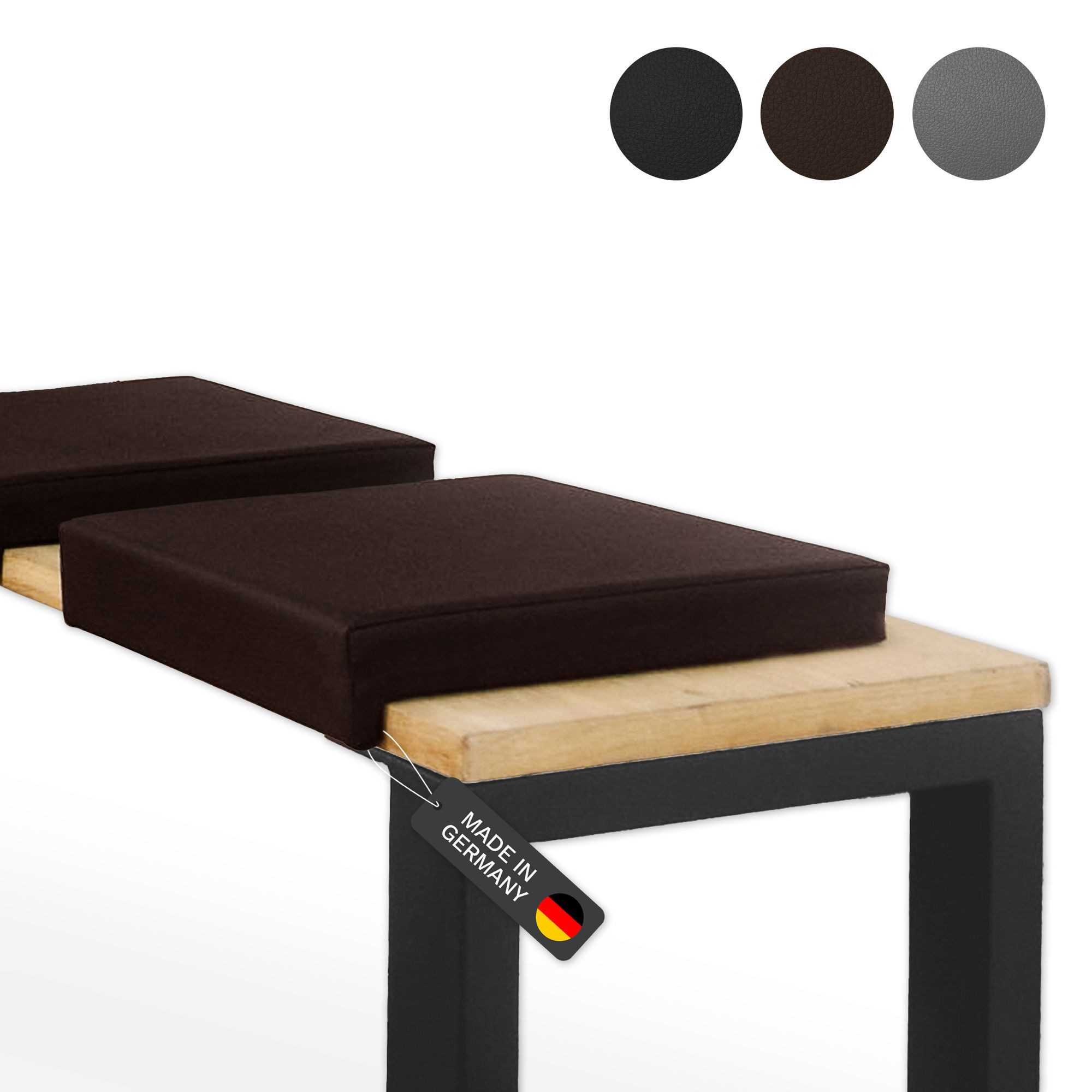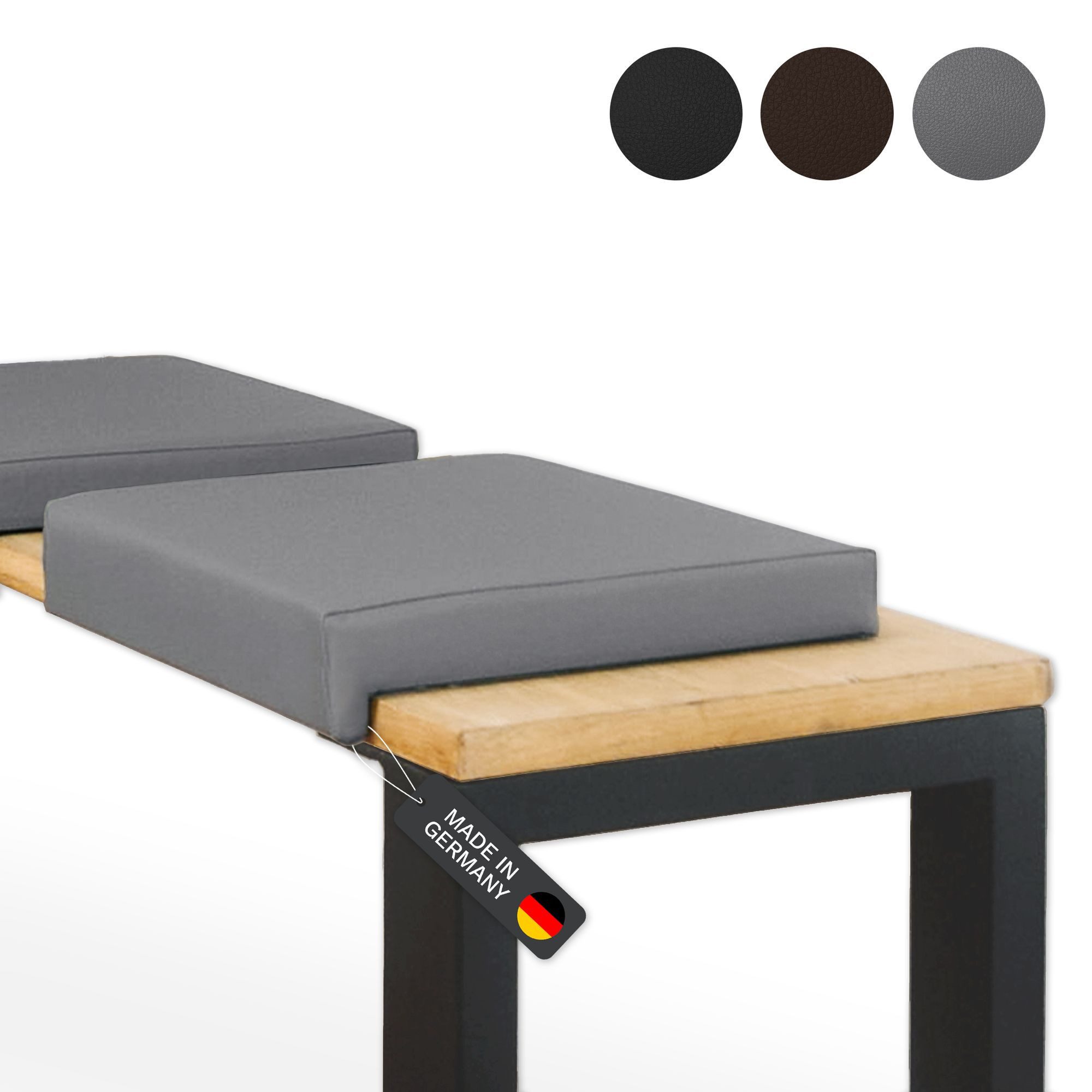 Unsere hochwertigen Bankauflagen aus pflegeleichtem Kunstleder (100.000 Scheuertouren) bieten mit ihrer extra dicken 6 cm Polsterung optimalen Sitzkomfort. Der weiche Schaumstoff im Inneren sorgt für ein angenehmes Sitzgefühl, während die robuste Spanplatten-Unterkonstruktion für Stabilität und Langlebigkeit sorgt.