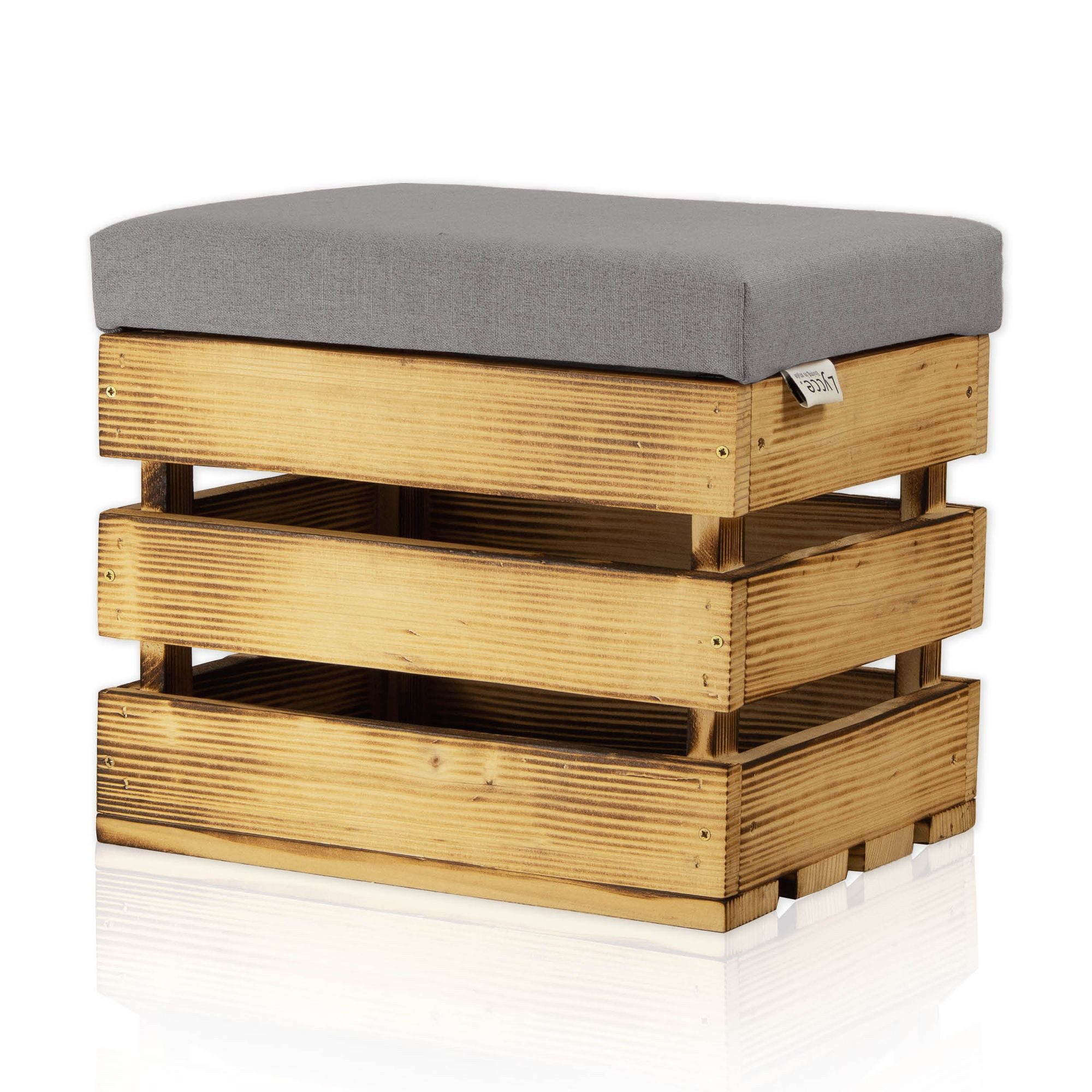 Durch ihre natürliche, schlichte Optik passen die Holzkisten in verschiedene Raumambiente und schaffen Wärme und Gemütlichkeit. Jeder Sitzhocker ist durch das natürliche Material und die Flammung von Hand einzigartig und schafft eine besondere Note in deinem Zuhause. Unsere Polsterhocker sind vielseitig einsetzbar und können als Aufbewahrung im Wohnzimmer, Schlafzimmer, Kinderzimmer, als Sitzmöglichkeit im Flur oder als Fußhocker beim Fernsehen verwendet werden. Du kannst sie auch für den überdachten Outdoor-Bereich verwenden, beispielsweise um eine gemütliche Sitzecke auf der Terrasse zu schaffen.