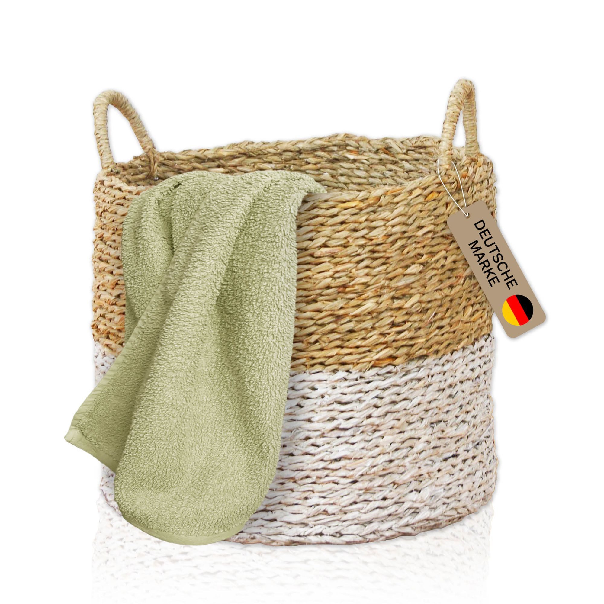 Unser Präsentkorb leer wird aus 100 % hochwertigem Seegras hergestellt – ein schnell nachwachsender Rohstoff, der robust, langlebig und umweltfreundlich ist. So bringst Du ein Stück Natur in Dein Zuhause. Dank seiner natürlichen Farbgebung in Beige und Weiß fügt sich der Korb Aufbewahrung harmonisch in verschiedenste Wohnstile ein. Ob Landhaus, Boho, Scandi oder modern – der Flechtkorb ergänzt deineEinrichtung auf elegante und dezente Weise. Das minimalistische Design der Körbe Aufbewahrung setzt stilvolle Akzente, ohne dabei aufdringlich zu wirken. Dank der stabilen Henkel und seines leichten Gewichts kannst Du den Wäschekorb Kinderzimmer problemlos transportieren – auch wenn er voll ist. Egal, ob Du Wäsche zur Maschine bringst, Spielzeug wegräumst oder den Aufbewahrungskorb geflochten anderweitig nutzt, er macht Dir das Leben leichter. Dabei ist unser Wäschekorb klein ein echtes Multitalent! Verwende ihn nicht nur als Wäschekorb beige, sondern auch als Badezimmer Deko, Kinderzimmer Deko, Korb für Adventskalender, Einkaufskorb, Bad-Organizer, Geschenkkorb, Treppenkorb oder zur Aufbewahrung von Decken, Strickzubehör oder Toilettenpapier. Ganz gleich, wofür Du es brauchst, dieses Wohnungs Zubehör passt sich Deinen Bedürfnissen an und sieht dabei immer gut aus. Du hast die Wahl zwischen drei unterschiedlichen Größen, damit der Wäschekorb weiß genau Deinen Anforderungen entspricht. Ob für kleine Dinge, mittelgroße Utensilien oder große Wäschemengen – es gibt für jede Aufgabe die passende Варианты.