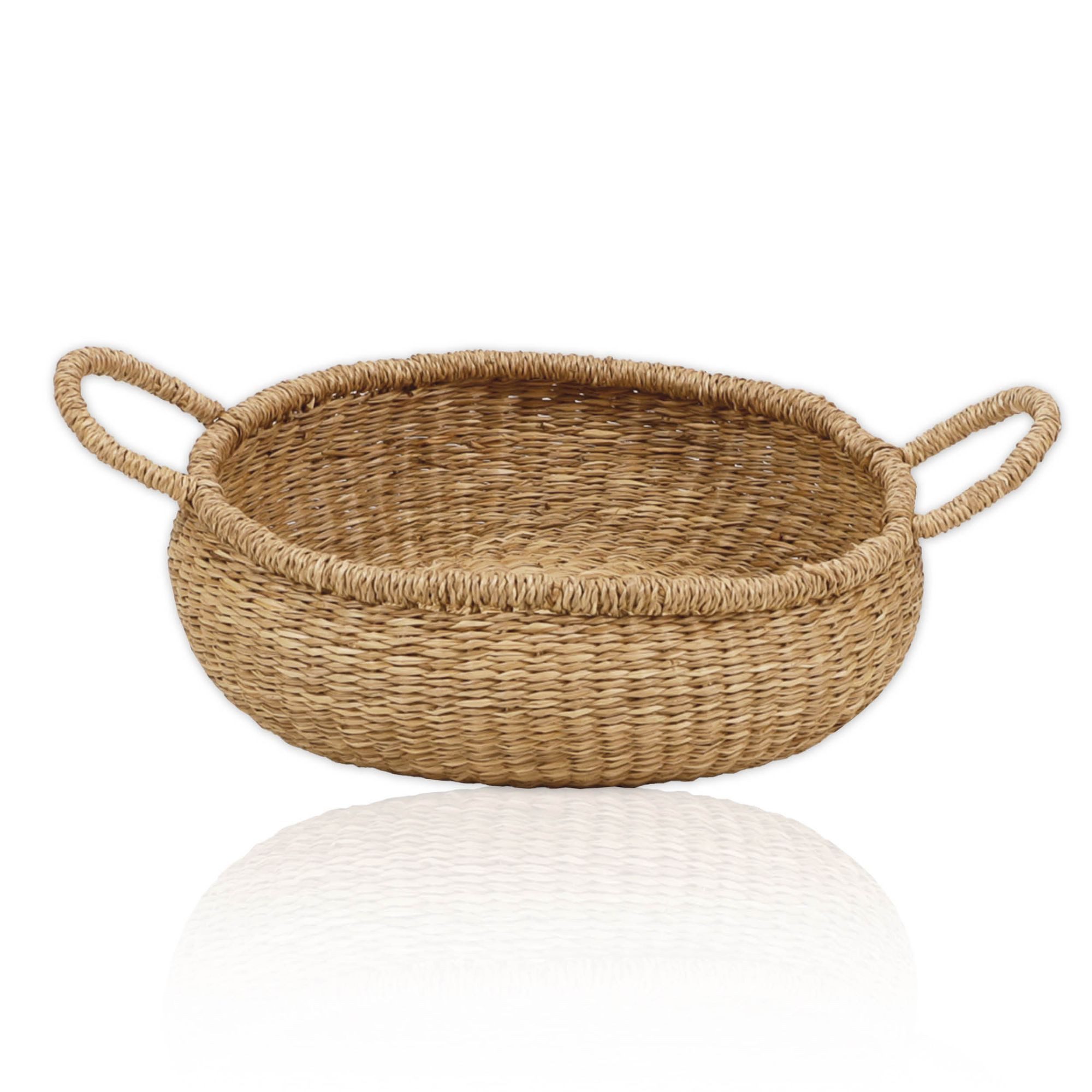 Lycce Aufbewahrungskorb Natur geflochten aus Seegras dekorativer Flechtkorb mit Henkel vielseitig einsetzbar in deinem Zuhause als Wäschekorb, Picknickkorb oder Papierkorb einzeln oder als Set