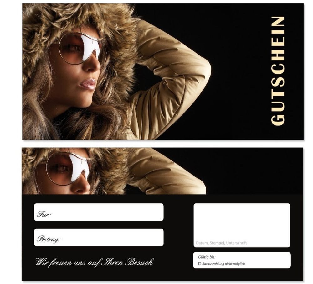 Впередhin kann auf der Rückseite die Gültigkeit der Gutscheine durch das Eintragen eines Datums frei bestimmt werden.