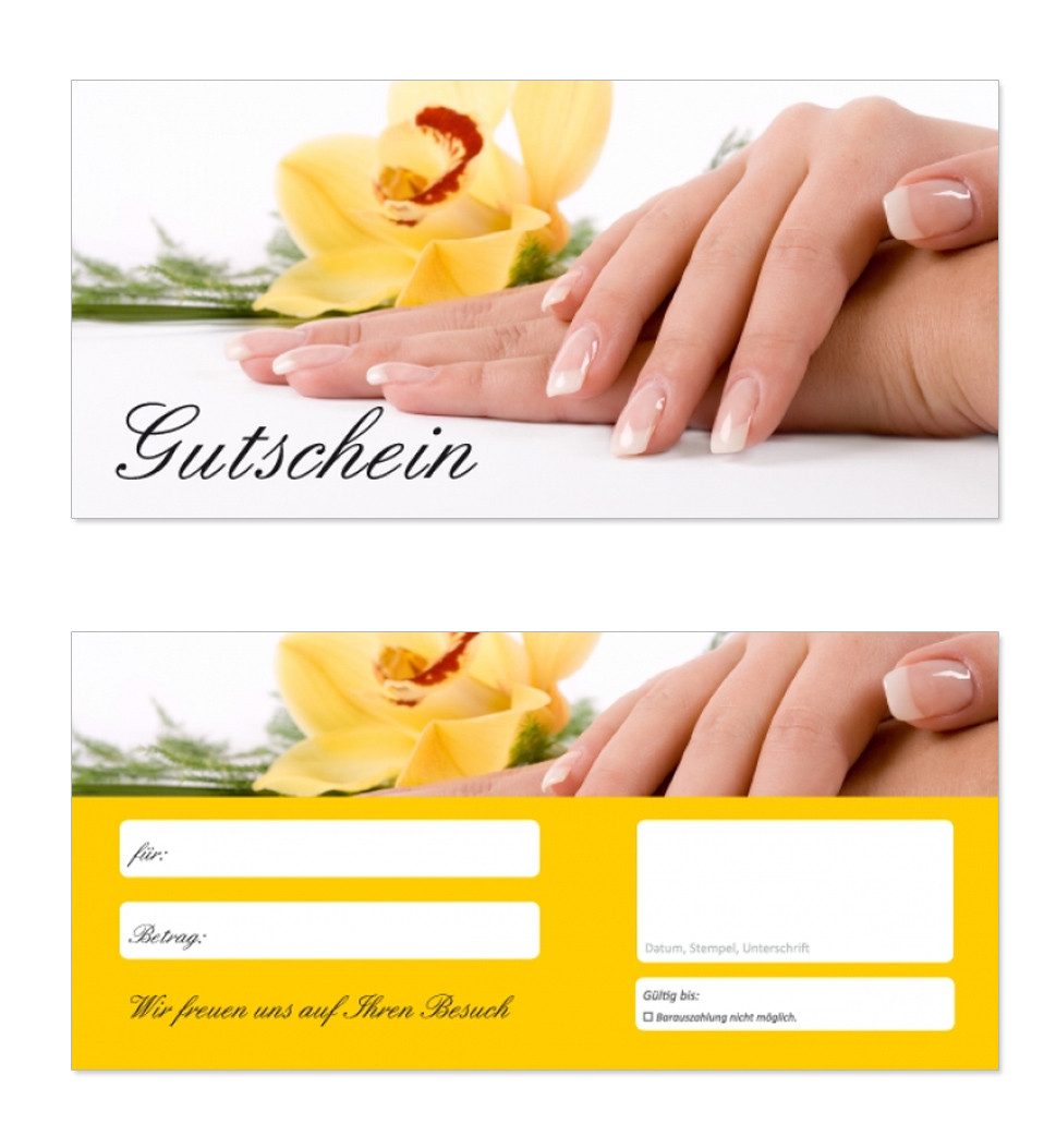 Hervorragende, zweiseitige, Geschenkgutscheine mit einer veredelten Vorderseite.