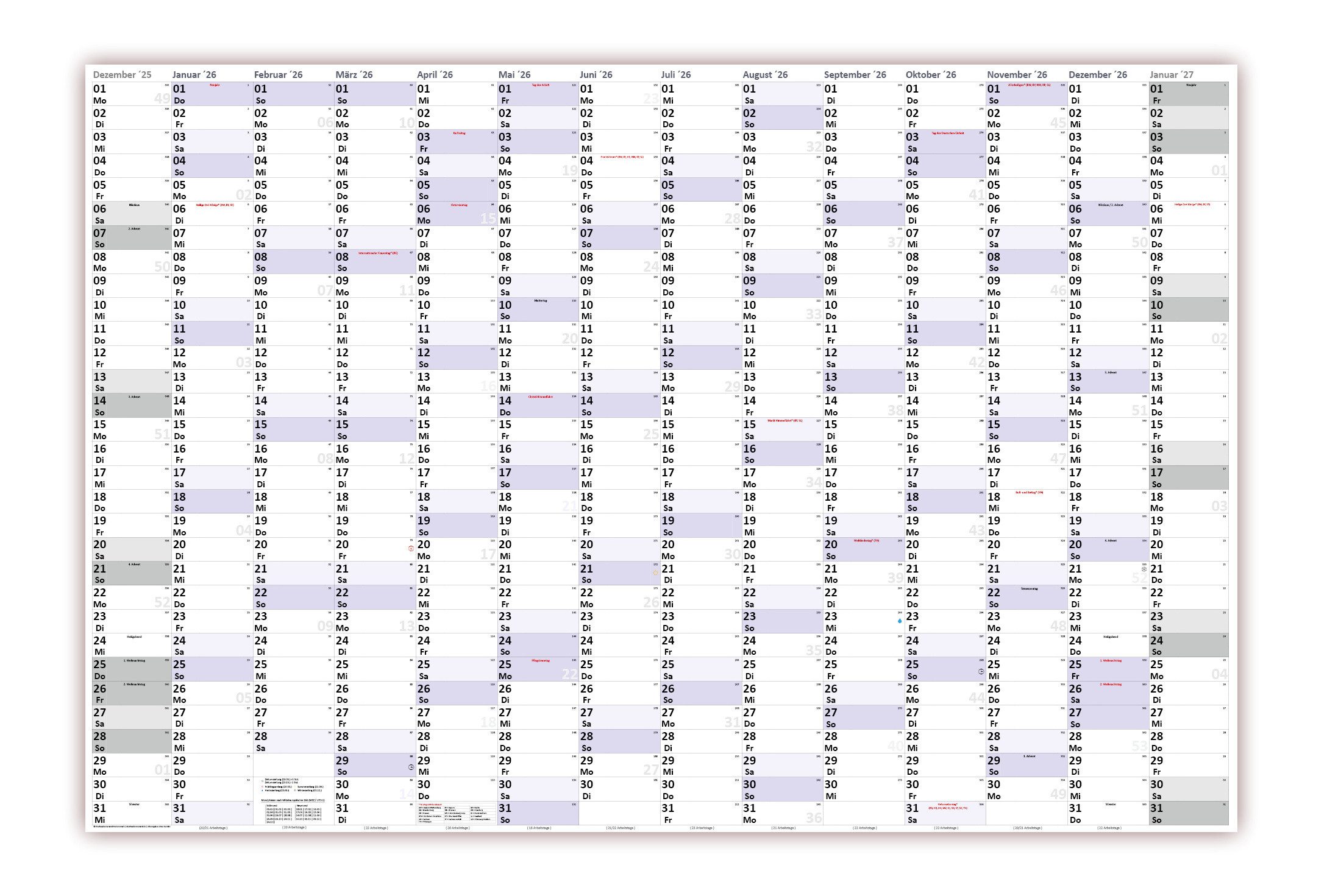 Designer / Cartoonist | das Kalendarium Layout ist für extra große Tageskästchen ausgelegt |
