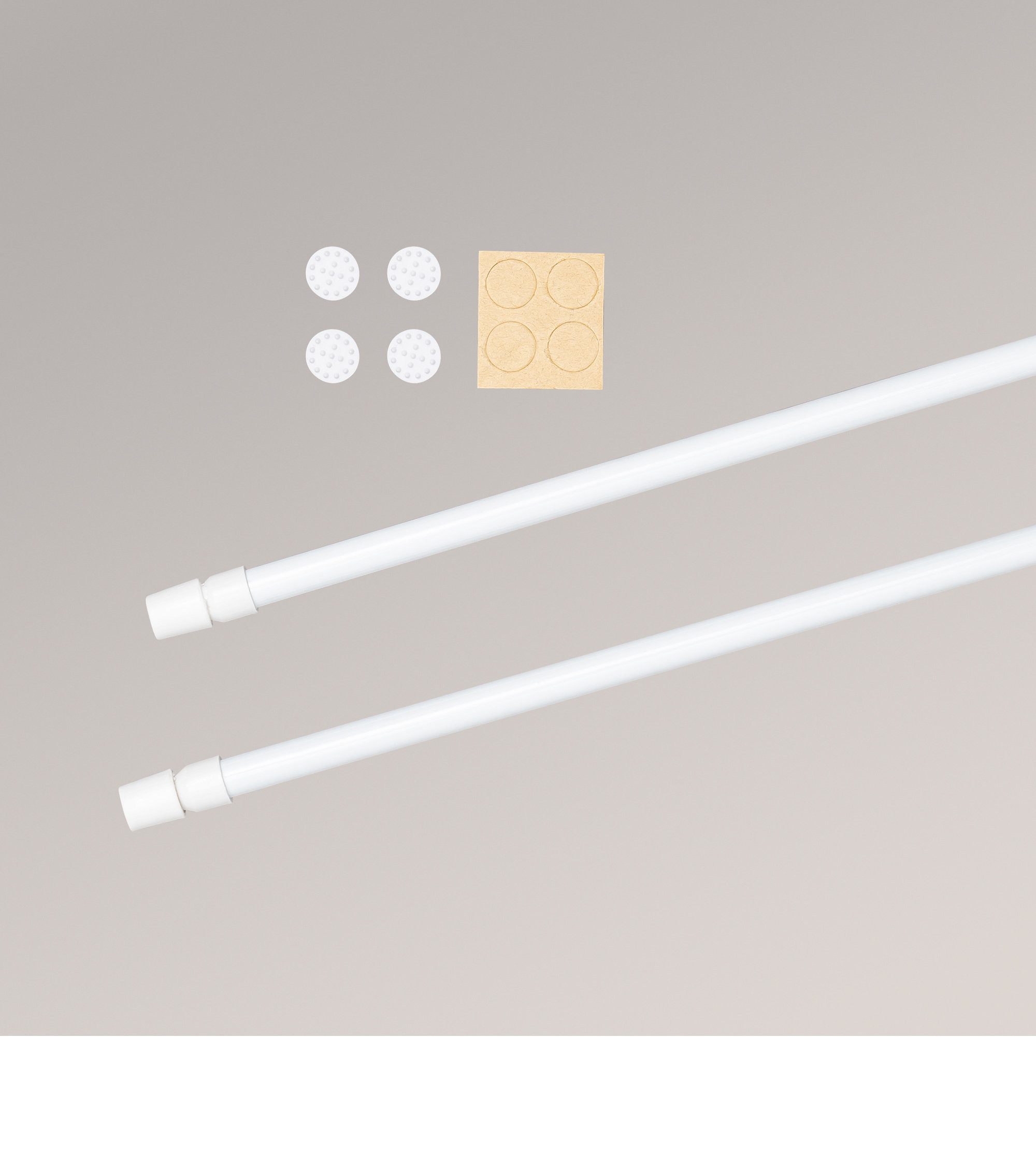 Nutzen Sie diese schmale Klemmstange aus Metall für das Aufhängen leichter Stoffe wie etwa von Bistro- und Scheibengardinen sowie Raffrollos. Dank der Federzugtechnik im Inneren lässt sich die Klemmstange ohne Bohren ins Fenster spannen und durch Ausdrehen an verschiedene Fenstergrößen anpassen. Fügen Sie zunächst die beiden Teile der Stange zusammen, bei geraden Glasleisten spannen Sie diese anschließend ins Fenster. Für schräge Glasleisten sind im Lieferumfang zudem Ausgleichstücke und Klebepads enthalten, die Sie in der Glasleiste befestigen. Dann können Sie wie gewohnt die Klemmstange so lange anpassen, bis sie stabil im Fenster sitzt...