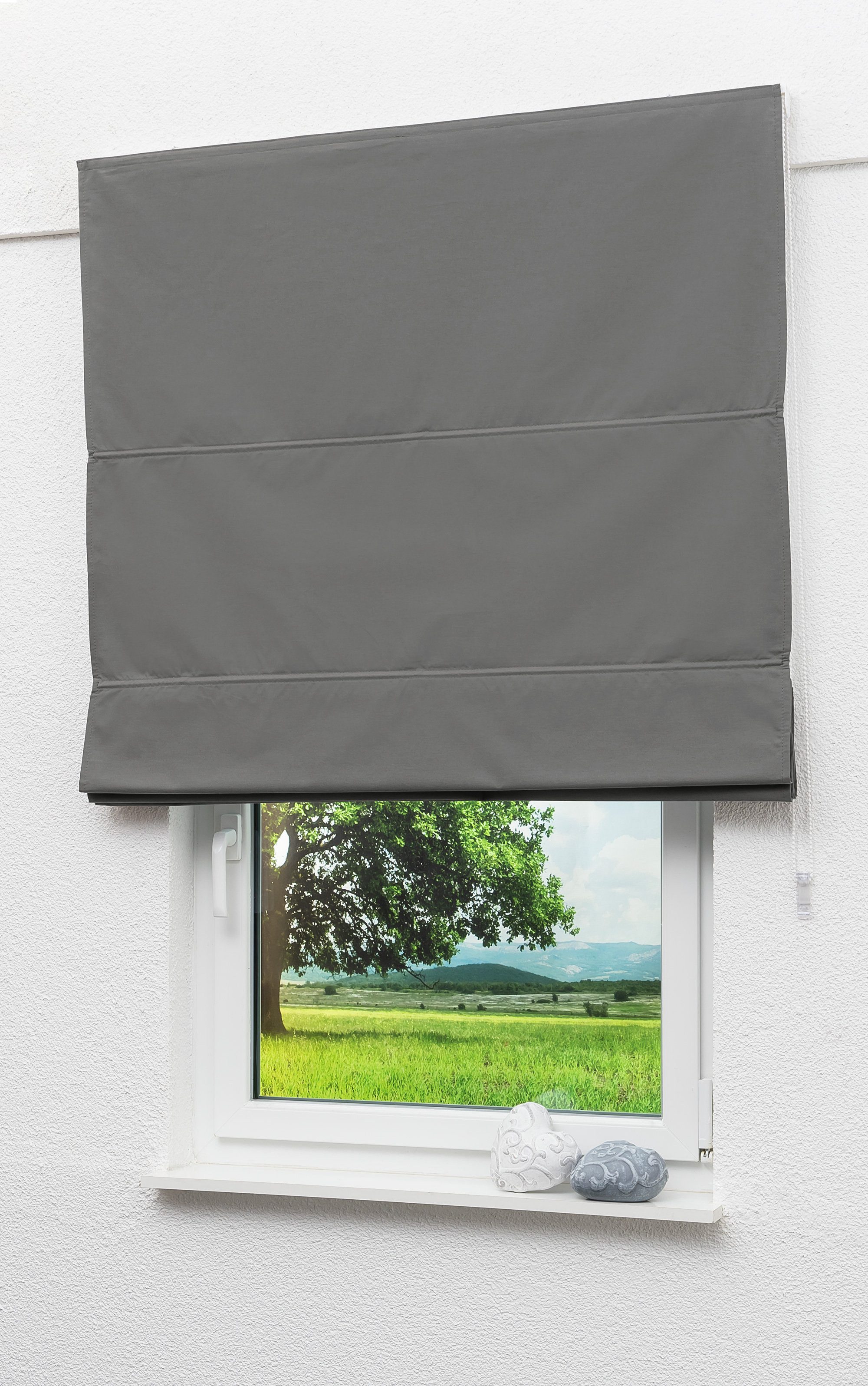 Wer Gardinen mag, schätzt vor allem ihre fließende, textile Optik und ihren dekorativen Charakter. Rollos hingegen werden aufgrund ihrer Flexibilität und der möglichen verdunkelnden Ausstattung geschätzt. Wer beides haben möchte, ist mit diesem Raffrollo gut bedient. Wie bei einem Vorhang fällt der Stoff des Raffrollos in sanfte, regelmäßige, horizontale Falten. Die Gemeinsamkeiten mit einem Rollo sind bei diesem Modell ausgeprägt. Es ist einerseits verdunkelnd und wird andererseits – und das ist wirklich eine Besonderheit – über einen Kettenzug bedient. Möglich macht es das Raffrolloprofil, an das der Stoff vorn mit Klettband angeheftet und hinten über Clips an den Raffhaken befestigt wird. Im Profil ist die Raffrolloschnur auf eine Welle gewickelt, die über die Bedienkette bewegt wird. Das Raffrollo legt sich dabei in regelmäßige Falten. Sie können den Stoff mit einer milden Seifenlauge per Hand reinigen. Ebenfalls das Bügeln bei niedriger Stufe und Dampfzugabe ist möglich – bitte beachten Sie hier, nur die Vorderseite zu bügeln. Zur Befestigung wird die Schiene über Schnellspanner an der Wand, der Decke oder in der Nische geclipt. Впередhin können Sie das Raffrollo ohne Bohren und Schrauben mit Klemmträgern am Fensterrahmen befestigen. Dieses Zubehör ist nicht im Lieferumfang enthalten und muss extra bestellt werden..