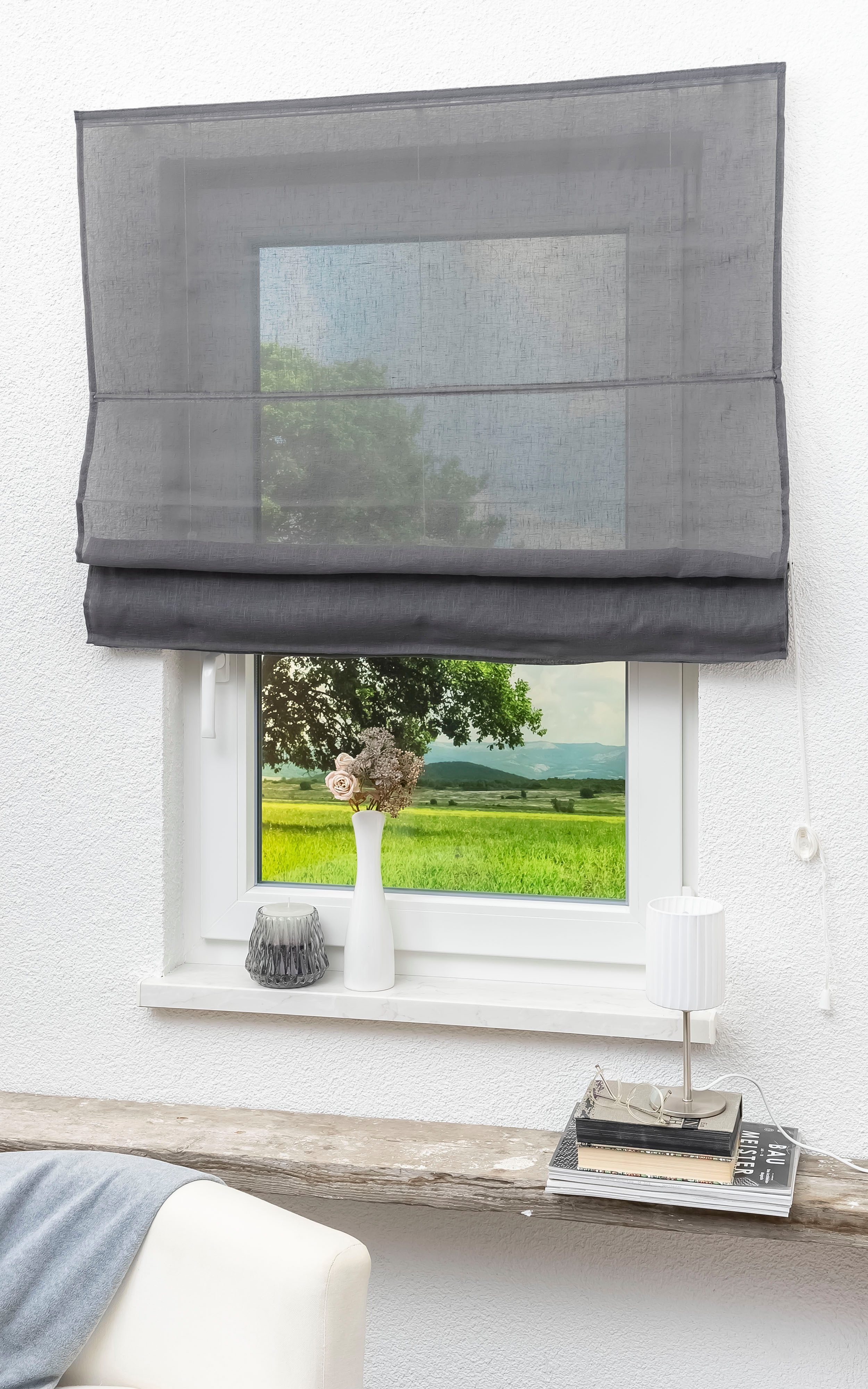 Lieferumfang | - Raffrollo Leinen Montageanleitung Montagematerial2x Wand-/Deckenträger 1x Schnurwickler 6x Schraube 6x Dübel Anzahl der Zubehörteile kann je nach Raffrollobreite variieren. |
