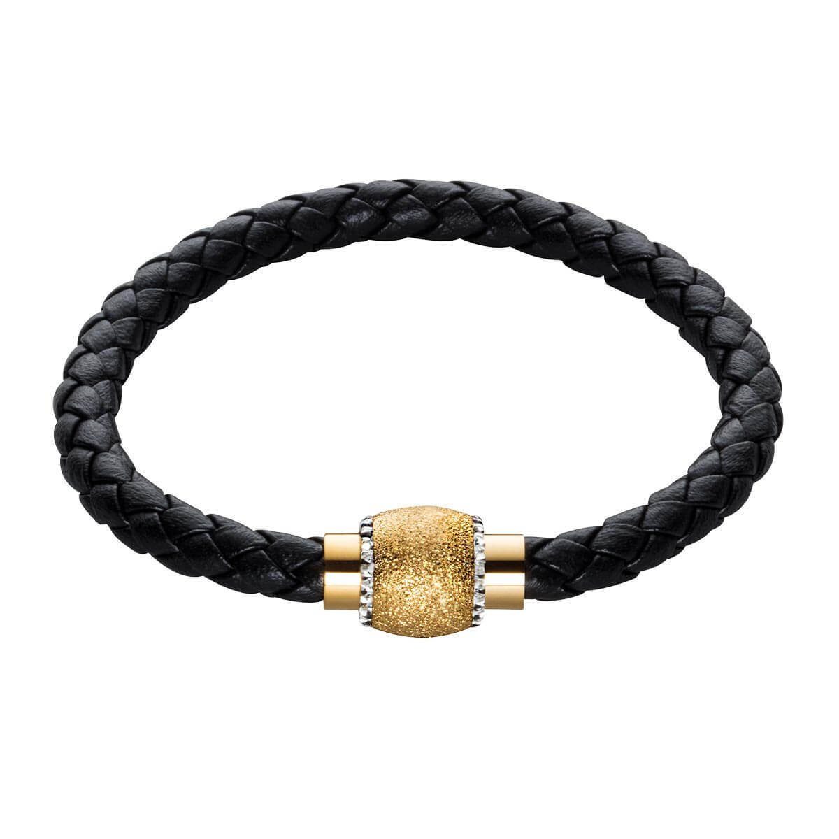 Lederarmband Damen mit Stein Zirkonia eingefasst. Edelstahl, Leder, bei Farbe gold - echt 14ct vergoldet; IP-beschichtet, Größe: 21 cm. Stilvolles Lederarmband mit Steinchen.