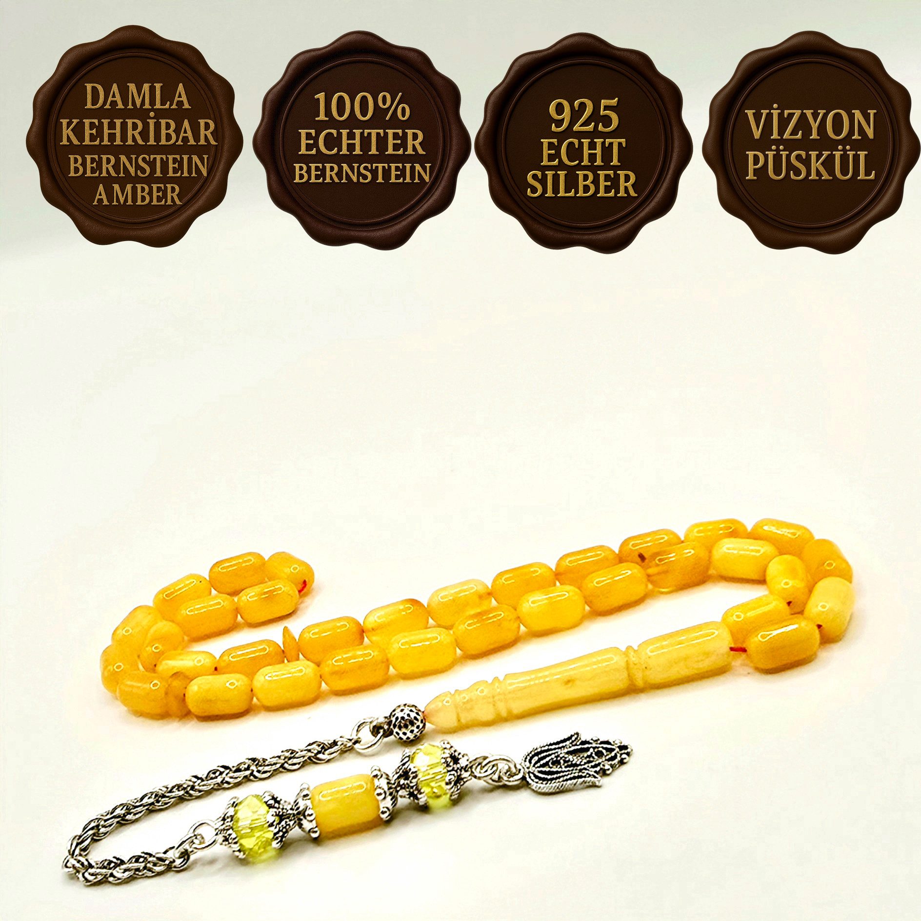 Tesbih aus echtem Bernstein mit 925er Silber-Püskül – Vizyon Püskül Serie / BÜROKRAT BOY