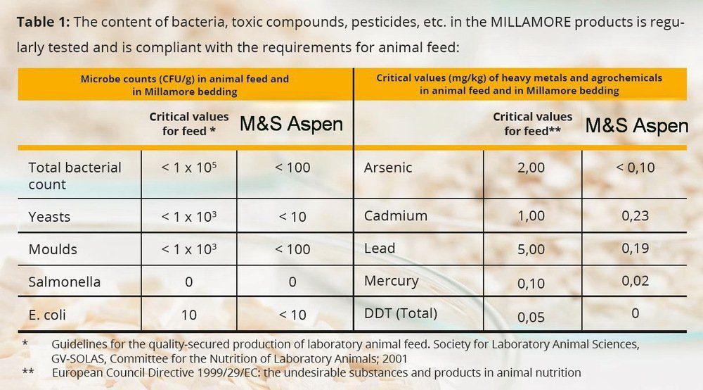 Das M&S Reptilien Espen Einstreu wird aus Espenholz (Populus tremula) hergestellt, das bevorzugte Einstreumaterial für Tiere – empfohlen von Tierärzten und Tierschutzexperten. Forschungslabore benutzen Espeneinstreu wegen ihrer hervorragenden hygienischen Eigenschaften. Das Einstreu wird bei 100 – 120 °C getrocknet, um so den Feuchtigkeitsgehalt auf unter 10 % zu drücken. Der niedrige Feuchtigkeitsgehalt und die Размер der Einstreupartikel garantieren, dass dieses Espen Einstreu eine Feuchtigkeitsaufnahmekapazität von 200 % besitzt. Außerdem eliminiert die hohe Temperatur in der Einstreu vorhandene Mikroorganismen (Bakterien, Schimmel und Hefe). In einem Vergleich mit verschiedenen Holzeinstreutypen hat M&S Aspen Einstreu andere Holzeinstreuarten mit einer dreimal höheren Ammoniak-Bindungskapazität übertroffen, wodurch die Luft im Käfig sauberer und sicherer bleibt sowie längere Intervalle beim Wechseln der Einstreu erlaubt. Das M&S Aspen -Einstreu enthält keinen Staub und hat glatte Ränder. Staub könnte die Atmungssysteme von Tieren und Menschen belasten. Scharfe Ränder sind der Hauptgrund für Staub und können außerdem empfindliche Haut verletzen. Der Staubinhalt (Partikel in der Размер von 0,1 – 0,5 mm und kleiner) von M&S Aspen Einstreu liegt nahe bei null (0,1 – 0,7 %). Andere häufig für Haustiere benutzte Holzspäne können bis zu 15 % Staub enthalten. Die chemischen Inhalte werden auf mehr als 200 Elemente und Zusammensetzungen, einschließlich Schwermetalle, toxische Verbindungen, Pestizide, Bakterien und dgl. mehr untersucht. Die Zusammensetzung des Einstreumaterials entspricht den Richtlinien für Tierfutter.