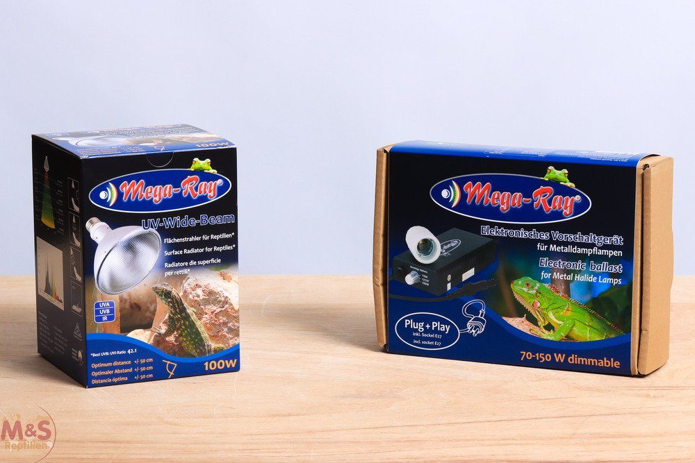 M&S Reptilien Terrarium Mega Ray 100 Watt Set (Lampe + E 27 Fassung + Vorschaltgerät)