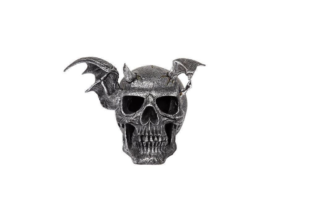 M&S Reptilien Terrarium ReptiZoo Deko-Primatenschädel mit Hörner und Flügel in silber (EHR1