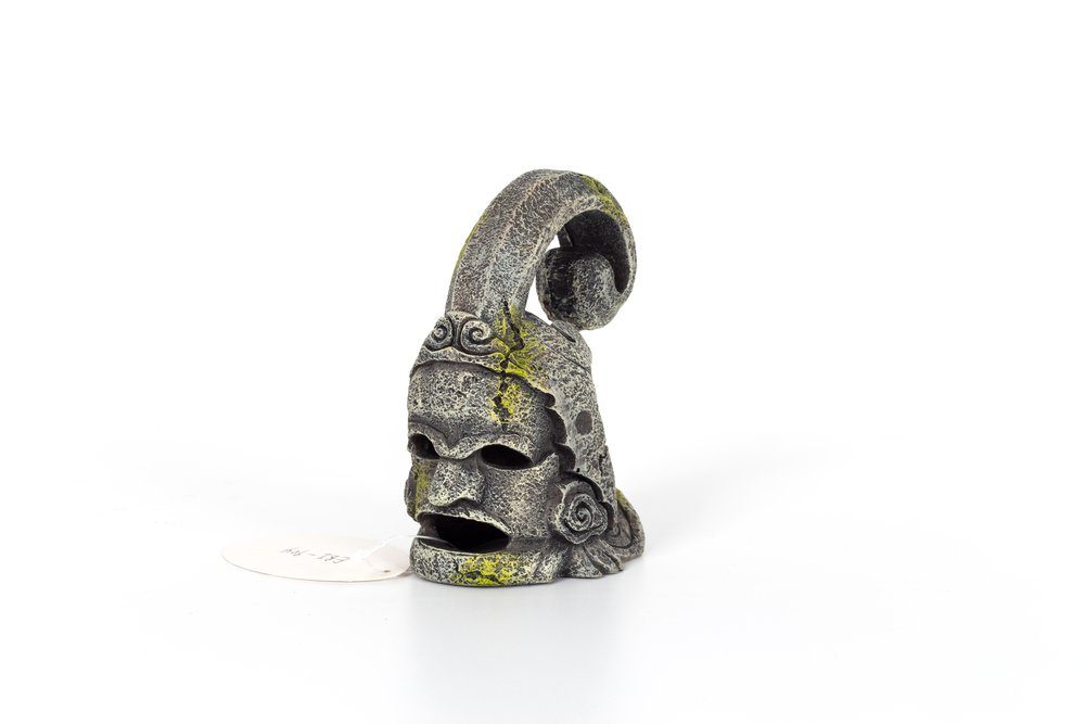 ReptiZoo Deko-Steinstatue mit der Abbildung eines antiken Gesichts mit Helm.  Auf der Rückseite befindet sich ein Einstieg, mit der die Statue auch als kleine Höhle genutzt werden kann.  Entweder von noch sehr jungen Königspythons in der Anfangszeit oder kleineren Natterarten Einstieg Rückseite:  Oval  von 4x4 cm; Öffnung Vorderseite: 2 Augen von je 1x 1,5 cm; Mund 1,5 x4 cm       Grundfläche Höhle innen: Oval 8,5 x 6,5 cm (breiteste Stelle)  Gesamtmaße: ca. 12,5 x 10 x 15,5cm  (BxTxH)