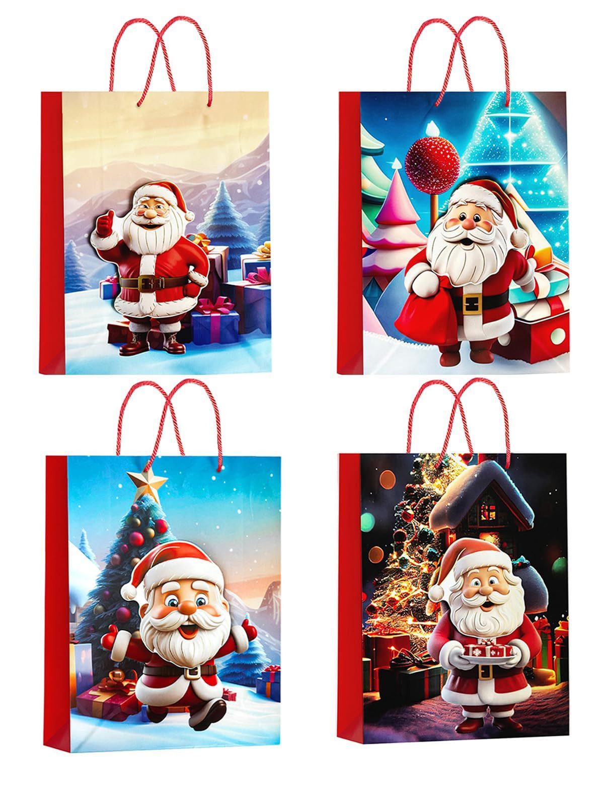 Vielfalt im Design: 4 stilvolle Geschenktüten-Designs versprühen weihnachtliche Stimmung – perfekt für jede Feier!