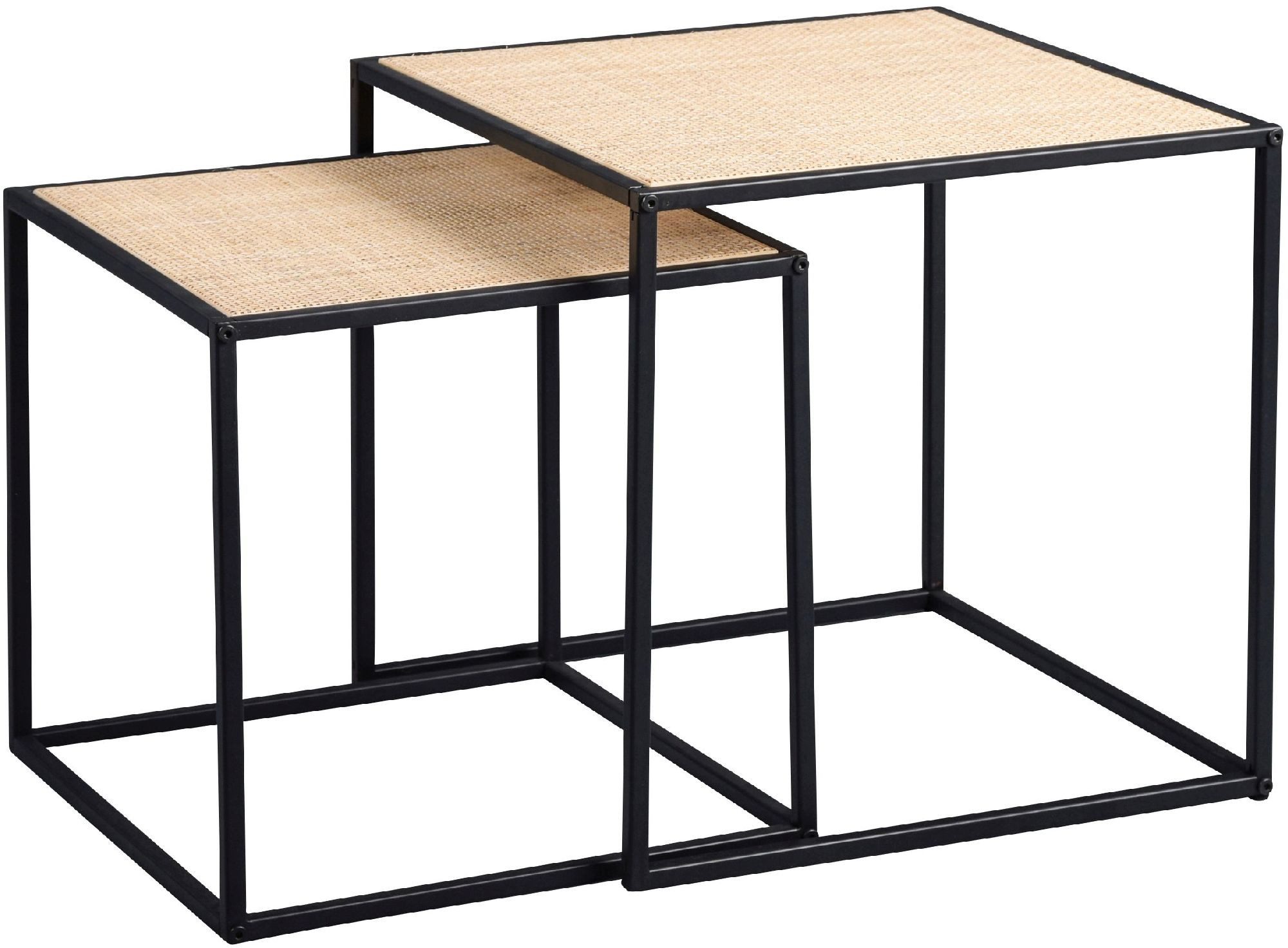 Der 2-Satztisch Luke aus der M2 Kollektion verbindet auf harmonische Weise Innovation und Tradition und setzt dabei auf ein zeitloses, modernes Design. Die Kombination aus natürlichem Rattangeflecht und einem stabilen Metallgestell in elegantem Schwarz verleiht diesem Tisch-Set eine besondere Ästhetik. Die zwei unterschiedlich großen Tische (44x44x44 cm und 38x38x38 cm) lassen sich flexibel einsetzen – ob als Couchtisch-Duo, dekorative Beistelltische oder praktische Ablageflächen. Das Rattangeflecht der Tischplatten schafft eine warme, einladende Atmosphäre und wird durch den robusten MDF-Unterbau perfekt ergänzt. Das schwarze Metallgestell sorgt für Stabilität und Langlebigkeit, während das filigrane Design die Tische leicht und luftig wirken lässt. Diese Satztische sind nicht nur ein funktionales Möbelstück, sondern auch ein stilvolles Highlight, das jedem Raum Charakter verleiht.