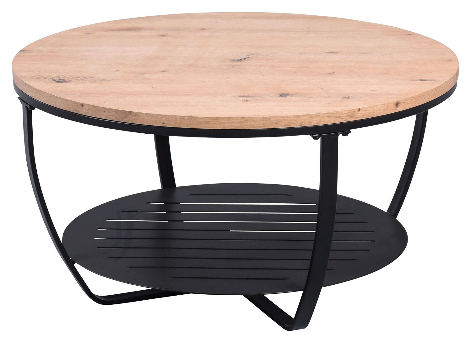 Der Couchtisch PALERMO von M2 kombiniert ansprechendes Design mit praktischer Funktionalität. Seine Tischplatte ist mit einem Artisan Eiche Dekor versehen, das einen warmen und einladenden Look schafft. Das Gestell und die Ablagefläche aus schwarzem Metall verleihen dem Tisch eine moderne Ästhetik und bieten gleichzeitig Stabilität. Die großzügige Ablagefläche bietet ausreichend Platz für Fernbedienungen, Zeitschriften und andere Wohnaccessoires, während der Tisch mit einem Durchmesser von 80 cm und einer Höhe von 43 cm ideal für verschiedenste Wohnbereiche geeignet ist.