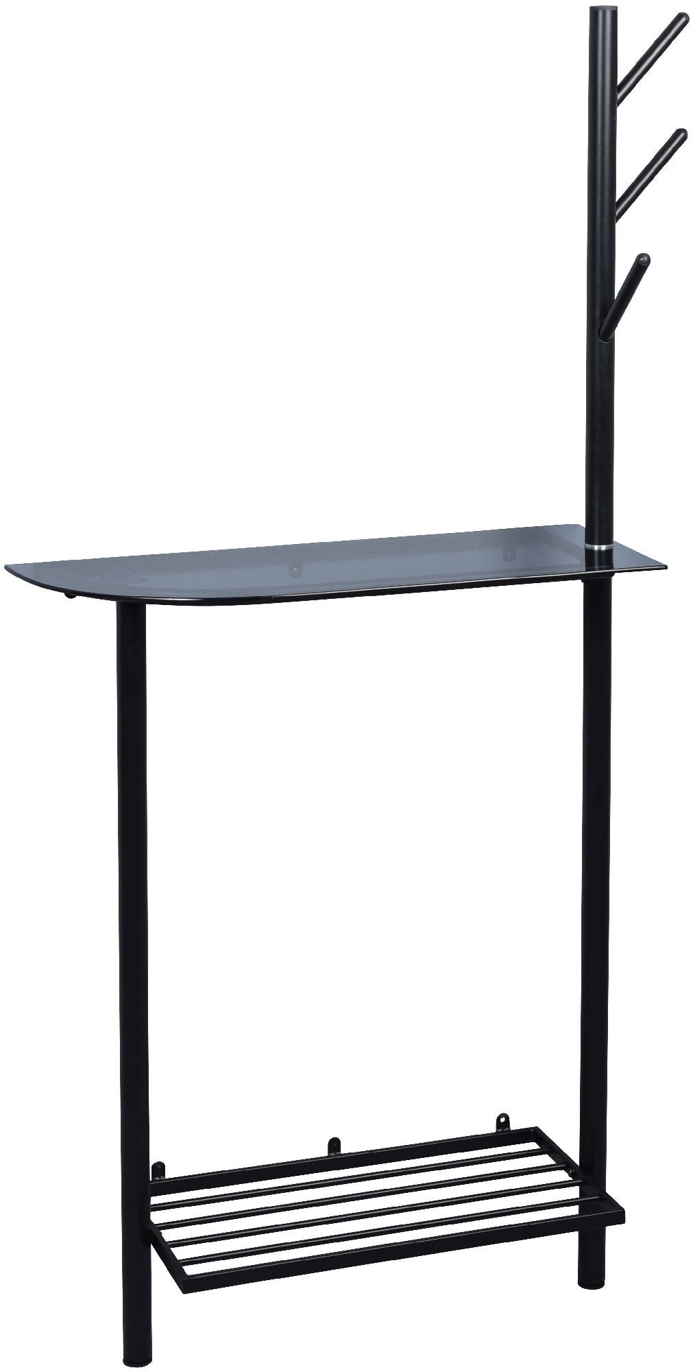 Die Garderobe Bilbao verbindet modernes Design mit funktionaler Raffinesse. Mit ihrer klaren Linienführung und dem minimalistischen Stil wird sie zu einem stilvollen Akzent in Ihrem Eingangsbereich oder Flur. Die Ablageplatte aus grauem Sicherheitsglas und die schwarze Metallgarderobenstange mit drei praktischen Haken bieten nicht nur eine optische Eleganz, sondern auch ausreichend Stauraum für Ihre Jacken und Accessoires. Zusätzlich sorgt die schwarze Metall-Schuhablage für eine geordnete und praktische Aufbewahrung Ihrer Schuhe. Diese Garderobe beeindruckt durch ihre schlichte Schönheit und bietet gleichzeitig funktionale Lösungen für den Alltag. Das stabile Metallgestell in Schwarz harmoniert perfekt mit der modernen, klaren Formensprache, sodass die Garderobe Bilbao in jedem Raum eine elegante und praktische Lösung darstellt. Ob für den Flur, das Schlafzimmer oder den Ankleideraum – sie fügt sich mühelos in verschiedene Einrichtungsstile ein und sorgt für Ordnung und Stil zugleich. Mit ihrer robusten Bauweise und dem ansprechenden Design ist die Garderobe Bilbao ein echtes Highlight für jedes Zuhause, das Wert auf sowohl Design als auch Funktion legt.