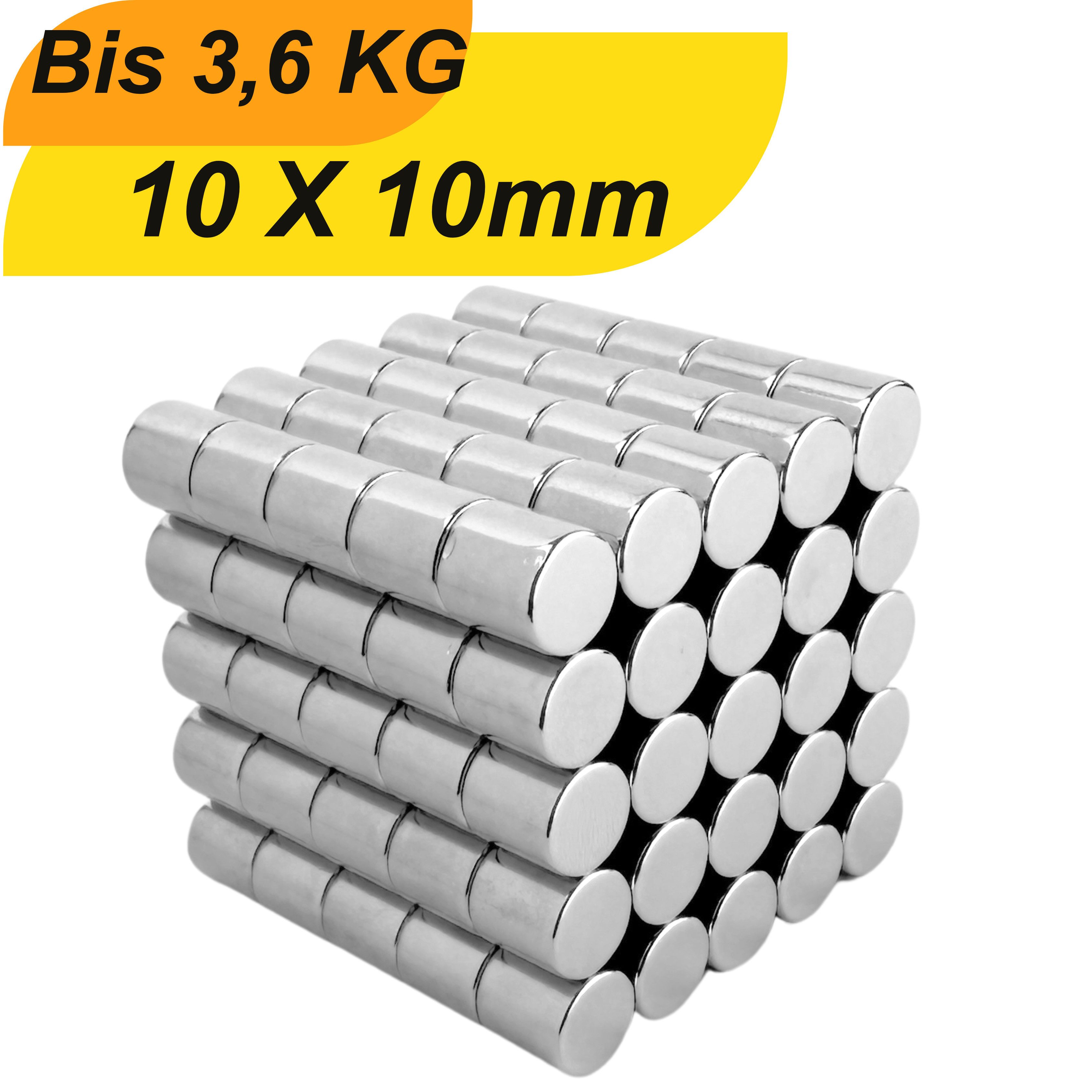 Material & Form: Hochwertiger Neodym-Magnet (NdFeB), Scheibenform Ø10 mm × 10 mm Höhe, Toleranz ±0,1 mm