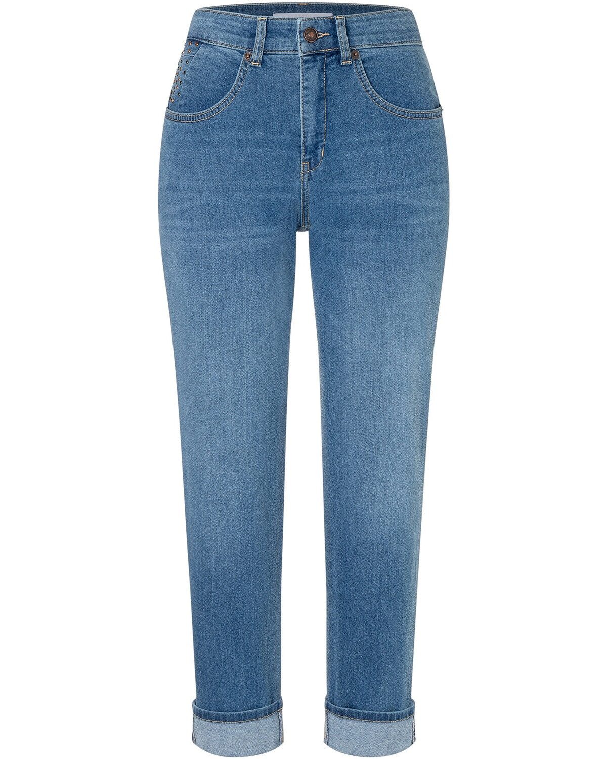 Die Damen 5-Pocket-Jeans Carol von MAC vereint stilvolles Design mit herausragendem Tragekomfort. Der feminine Fit im Carrot Style sorgt für eine schmeichelhafte Silhouette, während das schmal zulaufende Bein und die erhöhte Leibhöhe eine moderne Note verleihen. Die bequeme Taille und die klassischen Five-Pocket-Details machen diese Jeans zu einem vielseitigen Begleiter für verschiedene Anlässe. Ein besonderes Highlight sind die dezenten Destroyed-Effekte, die der Jeans einen lässigen Vintage-Look verleihen. Der gekrempelte Saum unterstreicht den trendigen Charakter und sorgt für einen frischen, jugendlichen Auftritt. Der Authentic Comfort Stretch Denim bietet nicht nur eine authentische, strukturierte Optik, sondern auch eine hervorragende Passform, die sich den Bewegungen des Körpers anpasst. Hergestellt aus hochwertiger, sehr elastischer Denim-Qualität, bietet die Jeans einen angenehmen Griff und maximalen Komfort. Sie eignet sich perfekt für den Alltag, lässt sich aber auch mühelos in schickere Outfits integrieren. Diese 5-Pocket-Jeans ist somit ein unverzichtbares Kleidungsstück für modebewusste Frauen, die Wert auf Stil und Bequemlichkeit legen. Oberstoff: 98% Baumwolle, 2% Elasthan
