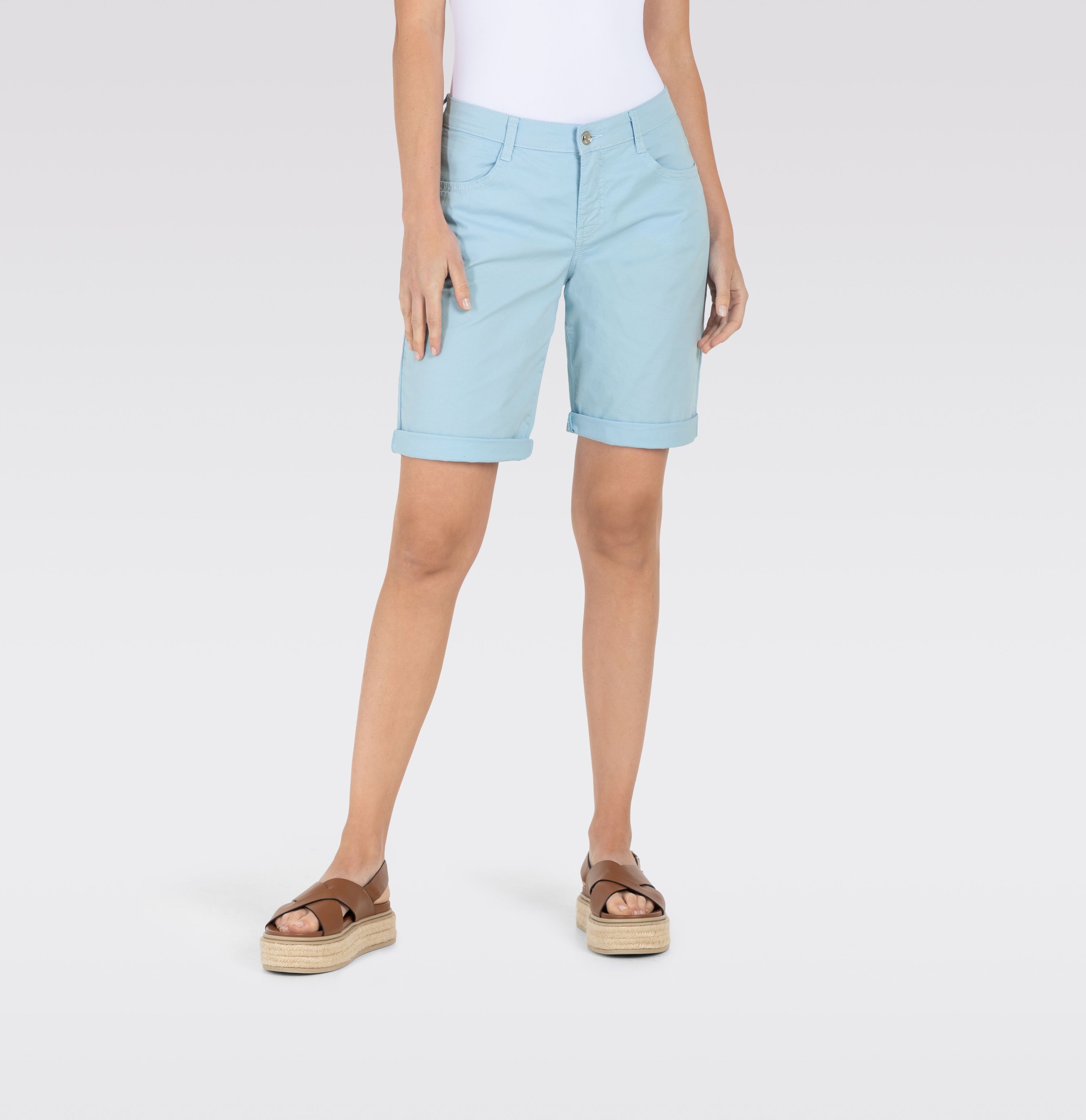 Shorts, Straight Fit, gerade Passform, normale Leibhöhe, Five Pocket, gekrempelter Saum, hochwertiger Baumwoll-Gabardine, elastische Qualität, weicher Griff, leicht im Gewicht, hervorragendes Rücksprung-Verhalten, hoher Tragekomfort, sportive Optik, über Better Cotton gesourcte Baumwolle, Das Model ist 1,75m groß und trägt die MAC Hosengröße 36, Beinabschluss bei Размер 36: 48cm
