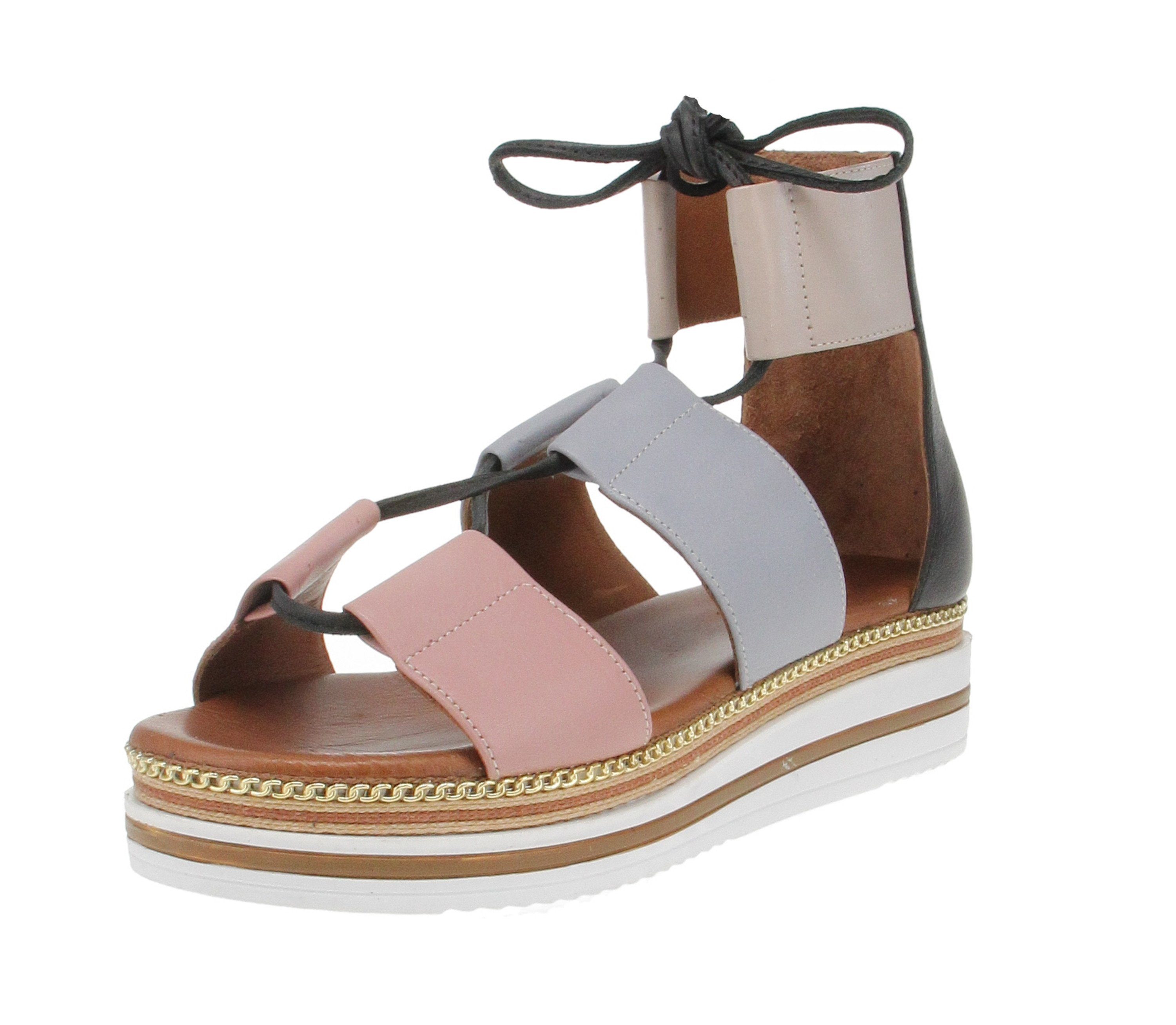 Diese Sandalette von Maca Kitzbühel begeistert mit sauberer Verarbeitung, maximalem Tragekomfort und modernem Erscheinungsbild. Das Obermaterial aus Leder in angesagter Farbkombination und die durch alle Riemchen gezogene Schnürung machen diese Sandalette zu einem wahren Hingucker. Die mehrfarbige Laufsohle mit den ausgefallenen Akzenten rundet den angesagten Look dieser Sandalette von Maca Kitzbühel perfekt ab.