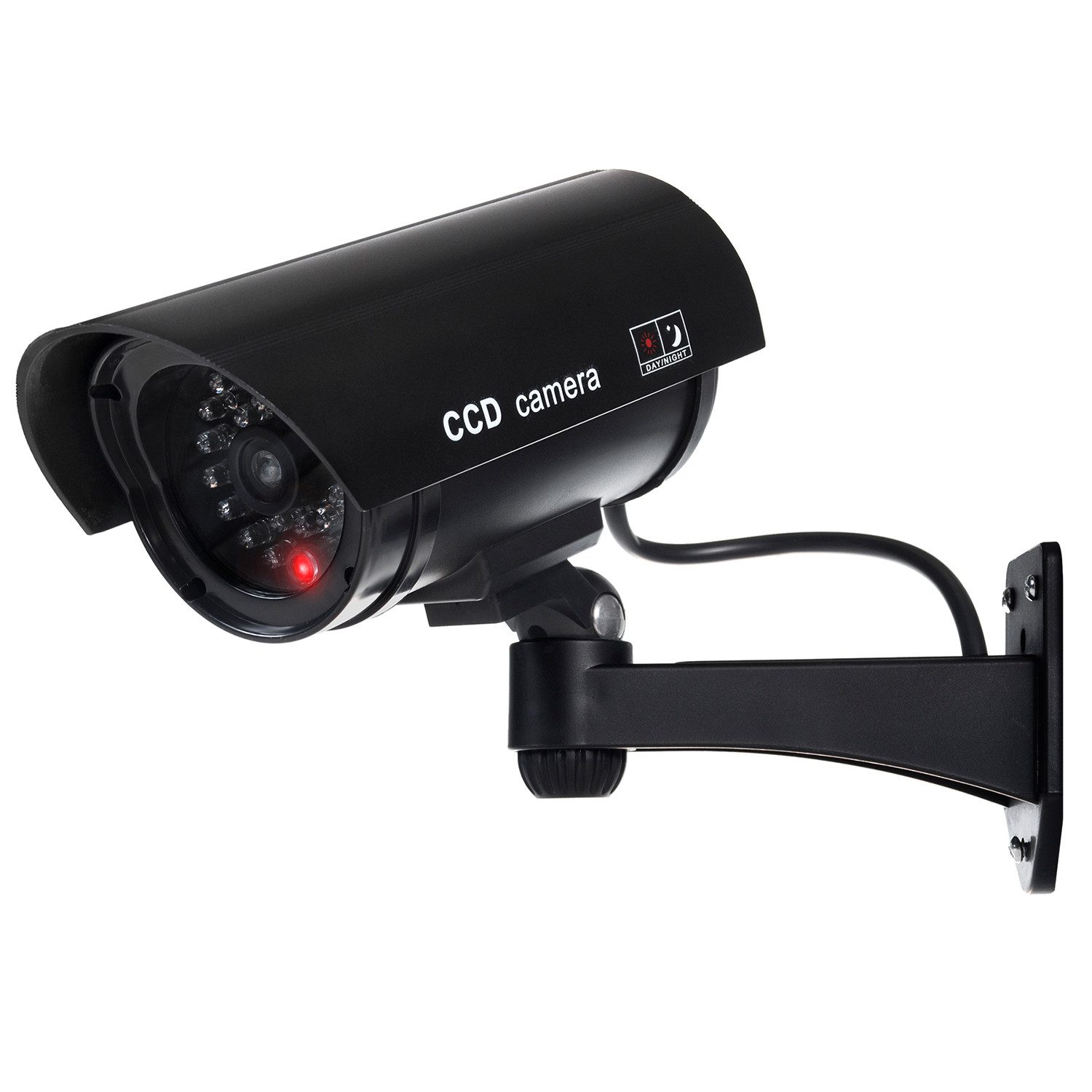 Professionelle Kamera-Imitation mit imitierter IR- und Rotlicht-Emittierdiode. Hergestellt aus hochwertigen Materialien und mit viel Liebe zum Detail. Das Ganze sieht sehr realistisch aus - es wird so manchen Dieb abschrecken. Selbst ein erfahrener CCTV-Installateur wird nicht unterscheiden können, ob er es mit einer professionellen CCTV-Kamera zu tun hat. Für den Innen- und Außenbereich geeignet - wetterfest!
