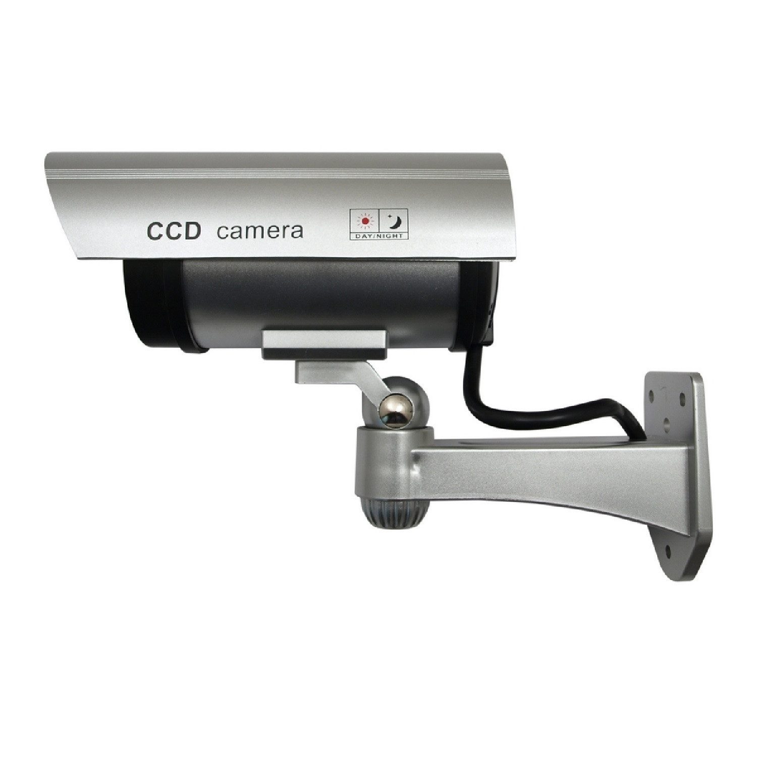 Dummy Kamera Attrappe mit rot blinkender LED und Bewegungssensor zur Abschreckung ungebetener Gäste, für den Innen- und Aussen-Bereich geeignet. Diese Fake-Überwachungskamera kann eine echte nicht ersetzen, bietet aber eine echt abschreckende Wirkung mit den roten LED Leuchten und schreckt somit potenzielle Diebe bereits schon von Anfang an ab. Im Vergleich zu einer echten Überwachungskamera haben Sie hier nicht so hohe Kosten!