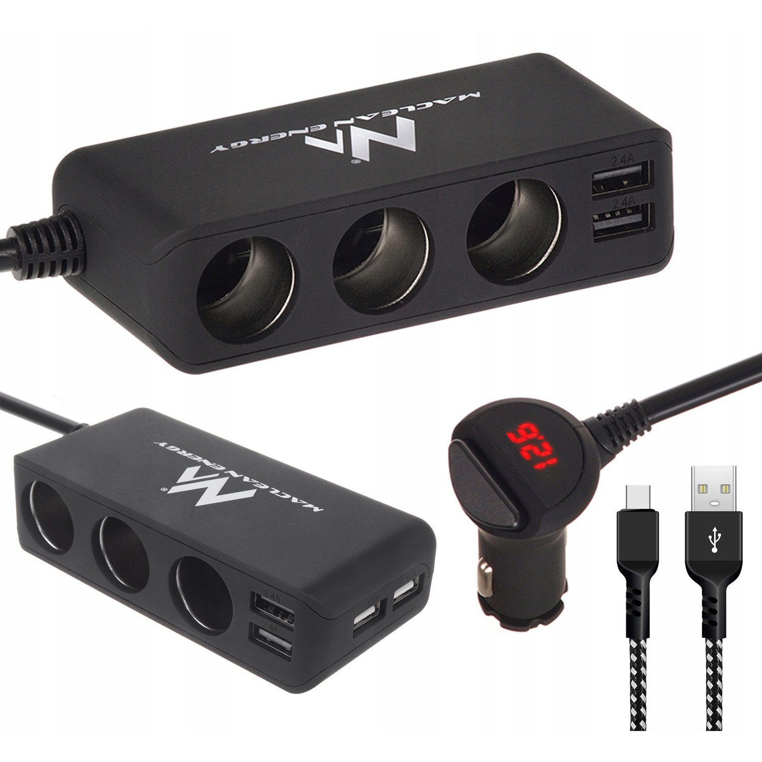 Modernes Design Ein äußerst ästhetisches Design ermöglicht eine nahtlose Integration des Splitters in das Erscheinungsbild jedes Autos. Hohe Qualität Der Zigarettenanzünder-Steckdosen-Splitter löst das Problem der Stromversorgungsanforderungen mehrerer Geräte während der Autofahrt. Beim Anschließen eines Geräts über USB beträgt der maximale Stromverbrauch 5V bei 2,4A. Das integrierte Voltmeter im Splitterstecker ermöglicht Ihnen die Überwachung der Spannung. Der Stromverbrauch der 3 Zigarettenanzünder-Ladebuchsen liegt bei 12V-24V und 7A (max), Leistung: 120W (max).