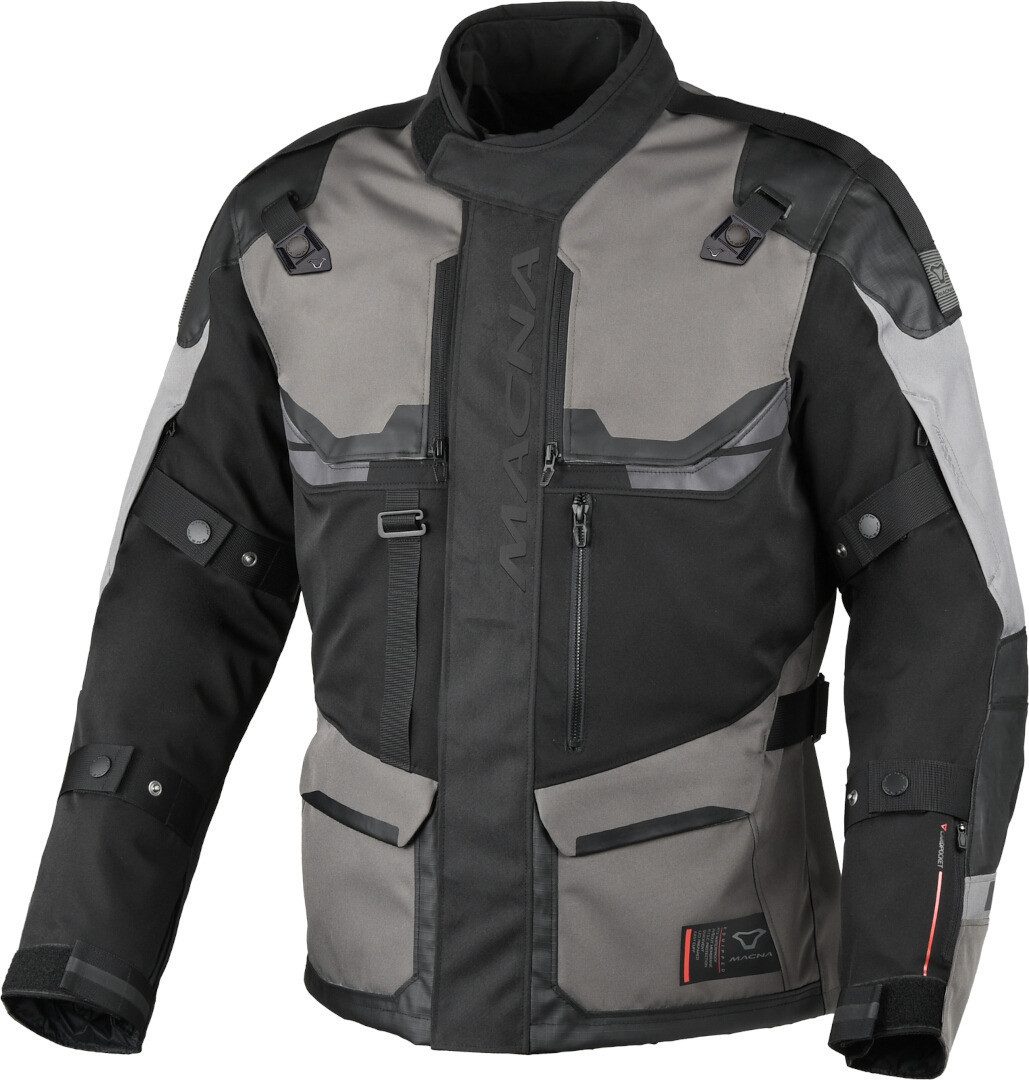 Die Touros besteht aus abnehmbaren Schichten, die der Außenhülle befestigt werden. Dieses System verwendet Reißverschlüsse anstelle von Schlaufen und Druckknöpfen, wodurch lose, schwimmende Schichten im Inneren der Jacke vermieden werden. Die wasserdichte Membrane ist abnehmbar und kann auch über der Außenjacke getragen werden, damit diese nicht durchnässt. Das Thermofutter ist ebenfalls von der Membran abnehmbar. Belüftung ist in Hülle und Fülle vorhanden, z. B. durch Belüftungsreißverschlüsse an den Oberarmen und am Rücken. Vor allem aber verfügt die Brust über große Belüftungspaneele, die durch Ziehen an einer Kordel an der äußeren Ecke der Brust geöffnet werden können. Die Kordeln werden mit Druckknöpfen fixiert, um die Paneele offen zu halten. Als wäre das alles noch nicht genug, ist diese Jacke auch für zusätzliche Sichtbarkeit vorbereitet: Am oberen Rücken befindet sich eine Tasche für die Macna 2C LED Leuchte.