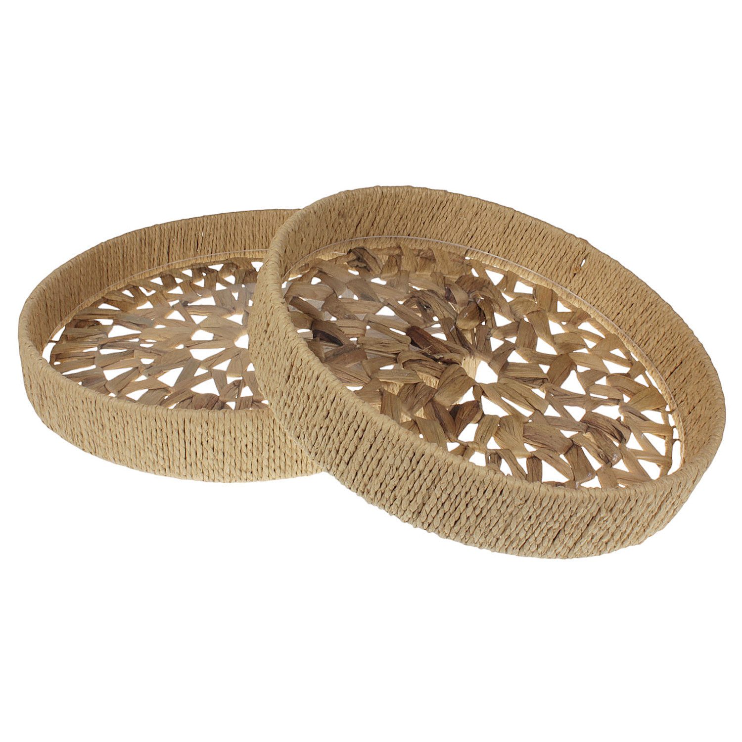 Dieses 2er Set Dekotabletts (34 cm & 39 cm) aus Seegras bietet eine stabile und stilvolle Basis für Deko, Kerzen, Gläser oder Snacks – perfekt für jeden Wohnstil!