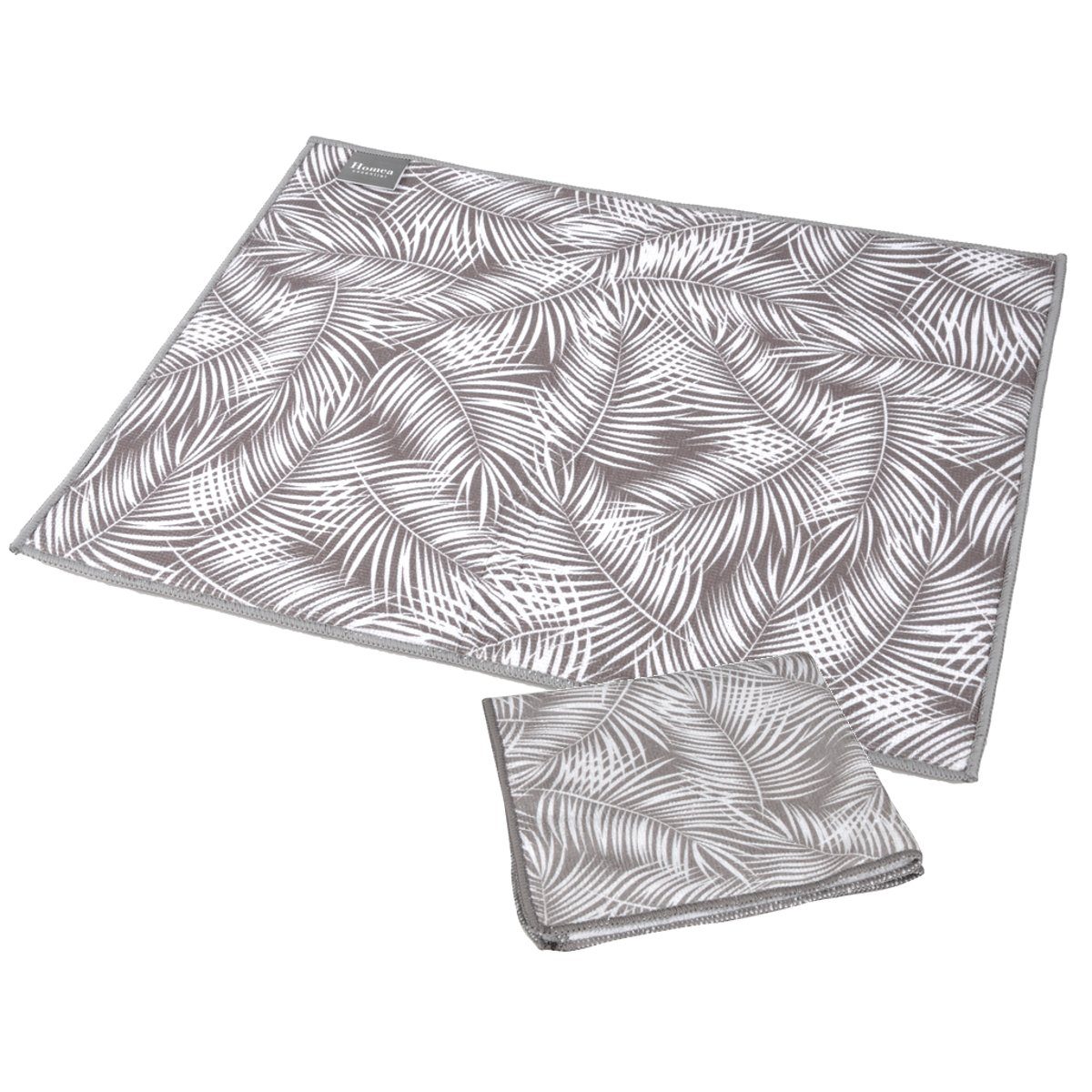 2er Set Abtropfmatte und Spültuch in Beige mit Blattmuster