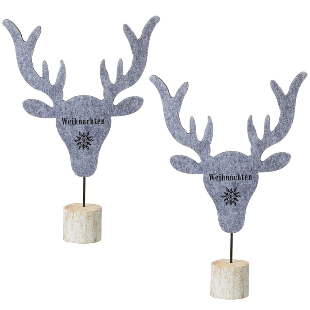 Als Dekofigur in Haus & Wohnung, als modernes Dekostück im Winter & zu Weihnachten, die Rentiere machen immer eine gute Figur. Die Filzrentiere haben eine Размер von ca. 28 x 20 x 4,5 cm. Beide Rentierköpfe sind aus Filz hergestellt und auf einem Holzfuß angebracht.