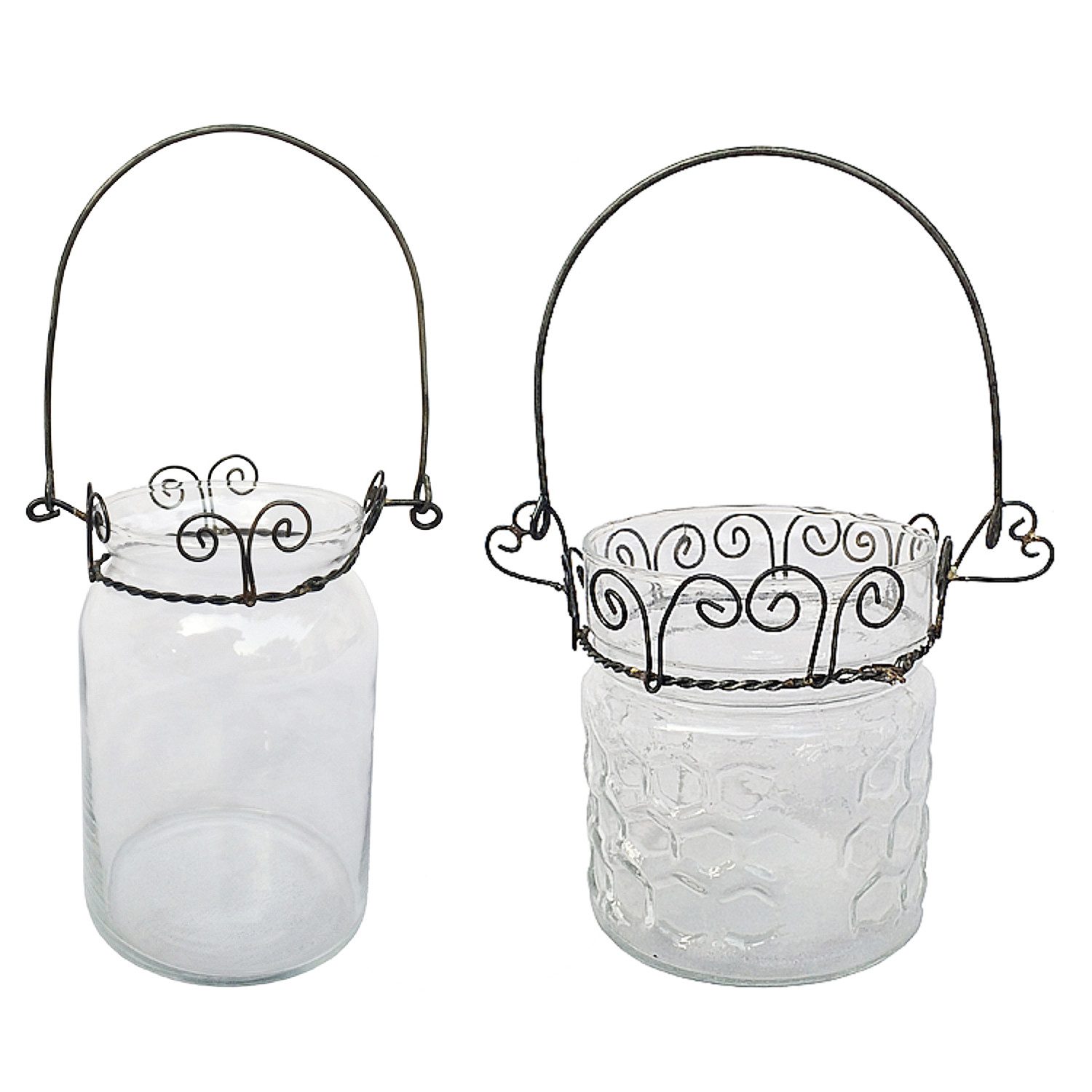 Diese Glaswindlichter mit Metallhenkel sind in zwei verschiedenen Größen erhältlich, um Ihrem Zuhause einen Hauch von zeitloser Eleganz zu verleihen.