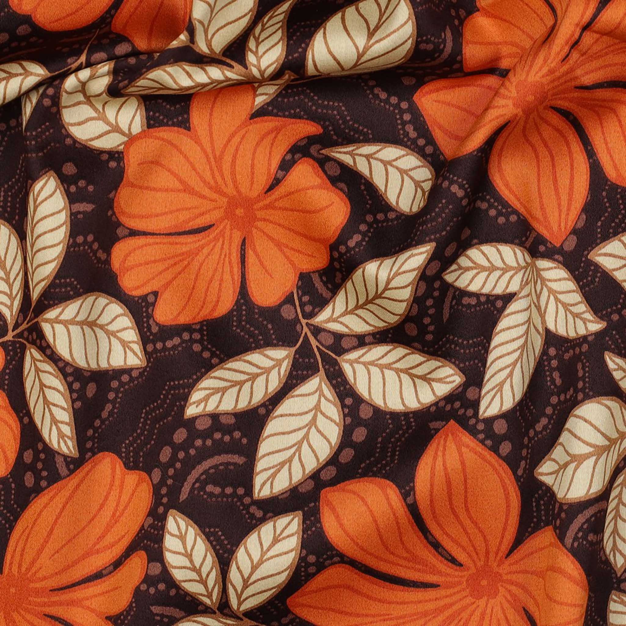 Dieser besondere Baumwoll-Satin bietet eine tolle Grundlage für eigene Projekte! Der Druck zeigt verschiedene abstrakte Muster oder ein Blumenmuster, das ebenfalls einen modernen, abstrakten Stil hat. Das macht den Stoff vielseitig für alles, was du gerne nähen möchtest! Mit einer Breite von ungefähr 148 cm gibt es viel Platz für deine Einfälle.