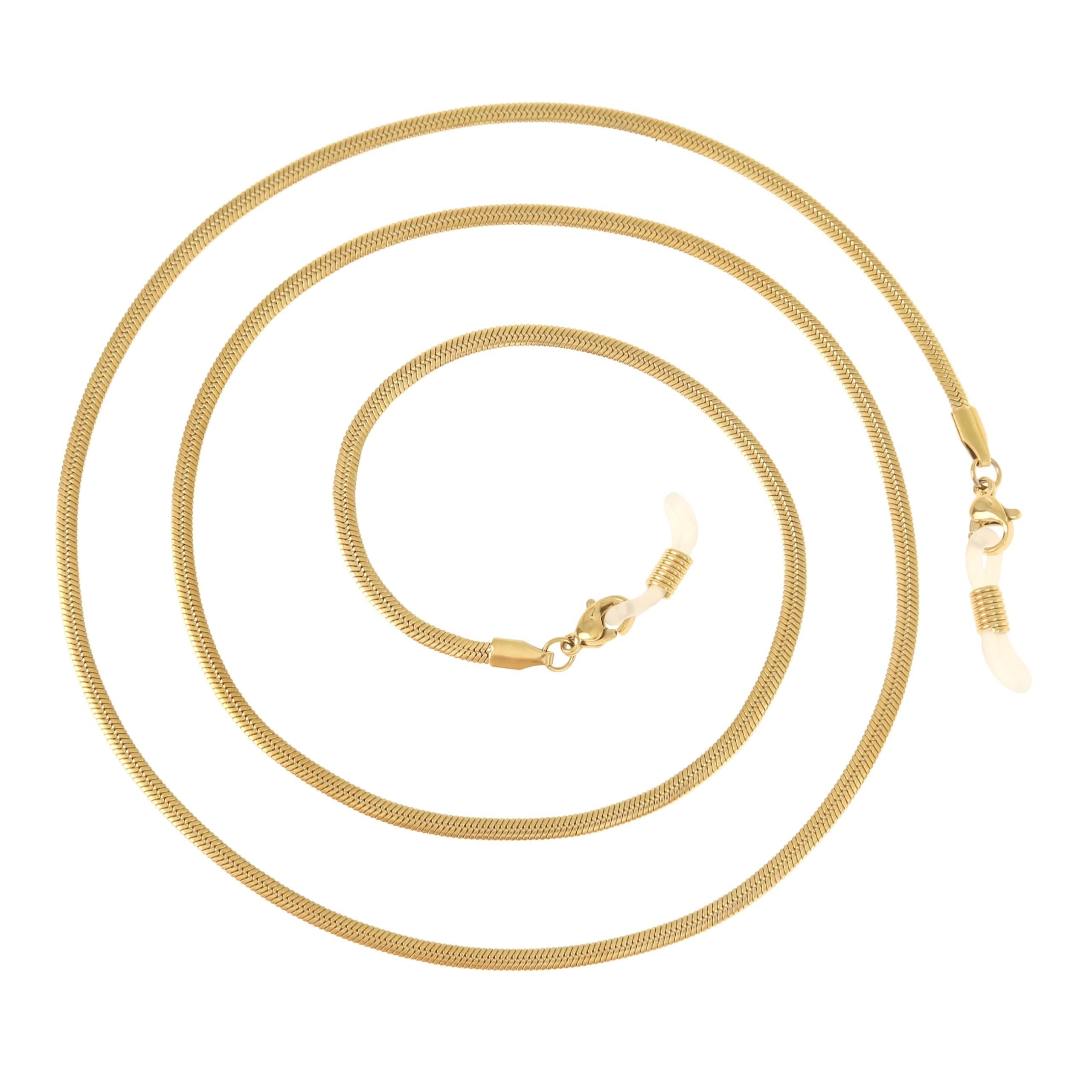 » Entdecke Deine neue, schicke Brillenkette – ein modernes Accessoire sowohl für Damen als auch Herren! Mit einer Длина von 70 cm und einer feinen Stärke von 3 mm präsentiert sich die Schlangenkette als dezentes, doch ausdrucksstarkes Brillenband, welches Deine Brille oder Sonnenbrille stets griffbereit hält.
